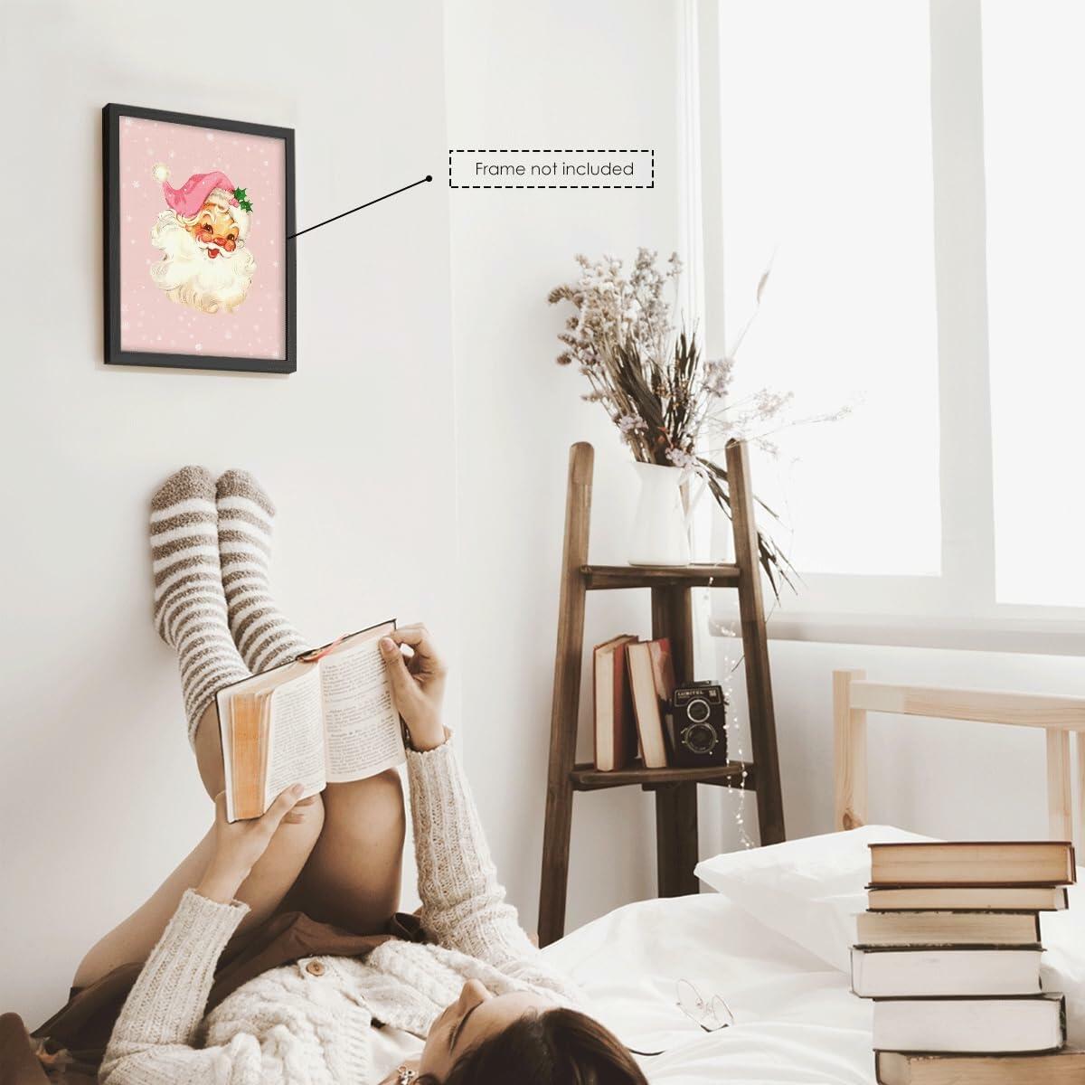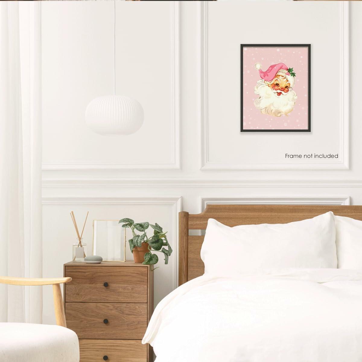 APJYM Pink Christmas Wall Art Merry Christmas Tree Santa 8x10 Inch