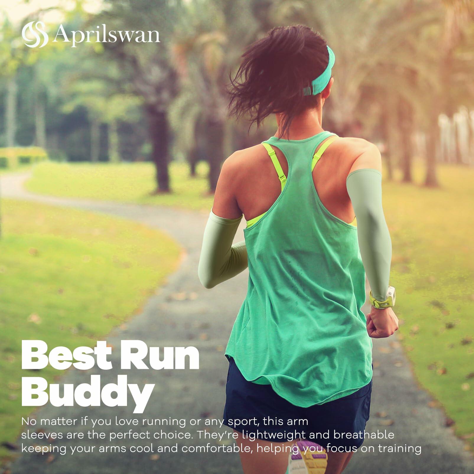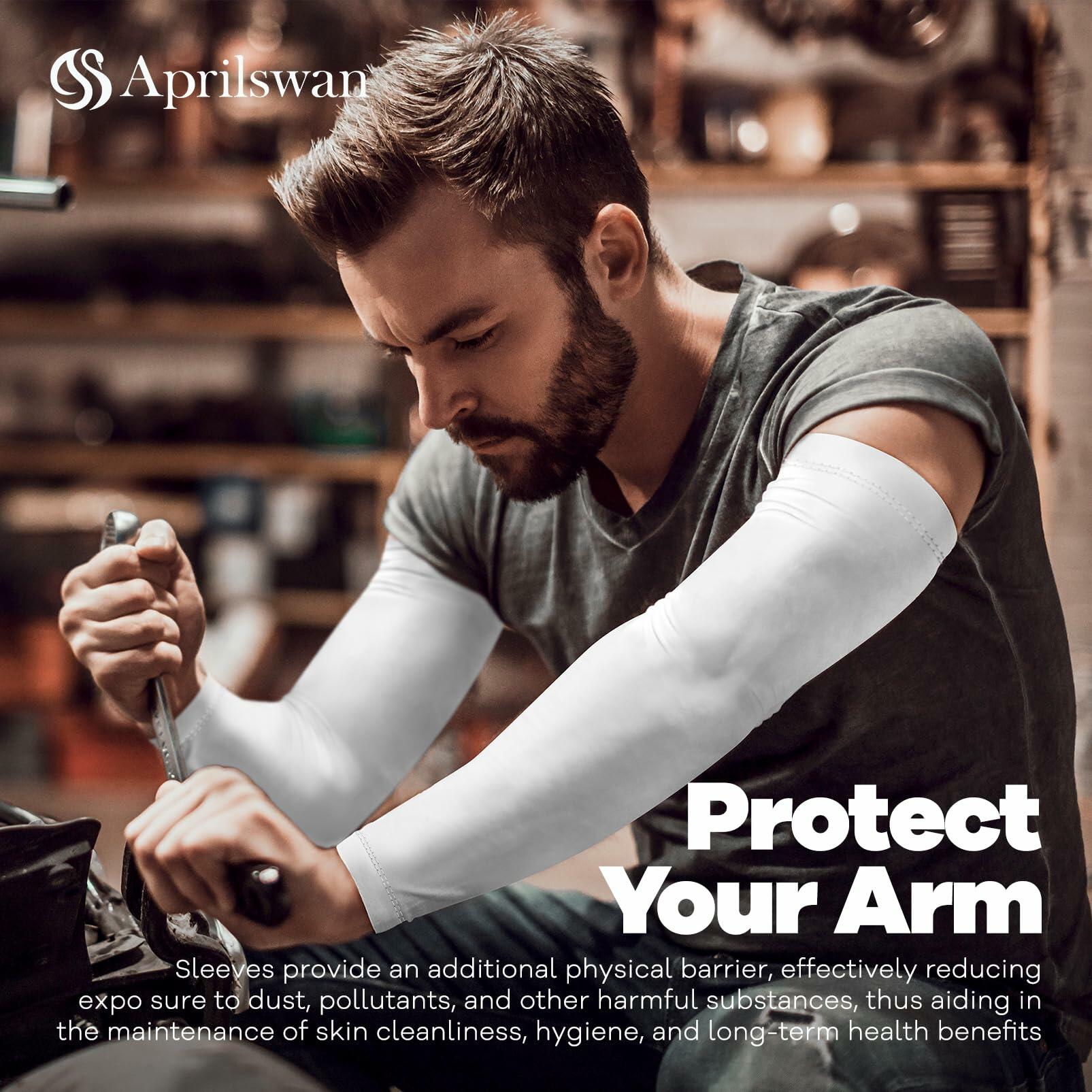 Aprilswan UV Sun Protection Arm Sleeves Compression Cooling 2 Pairs Black/White
