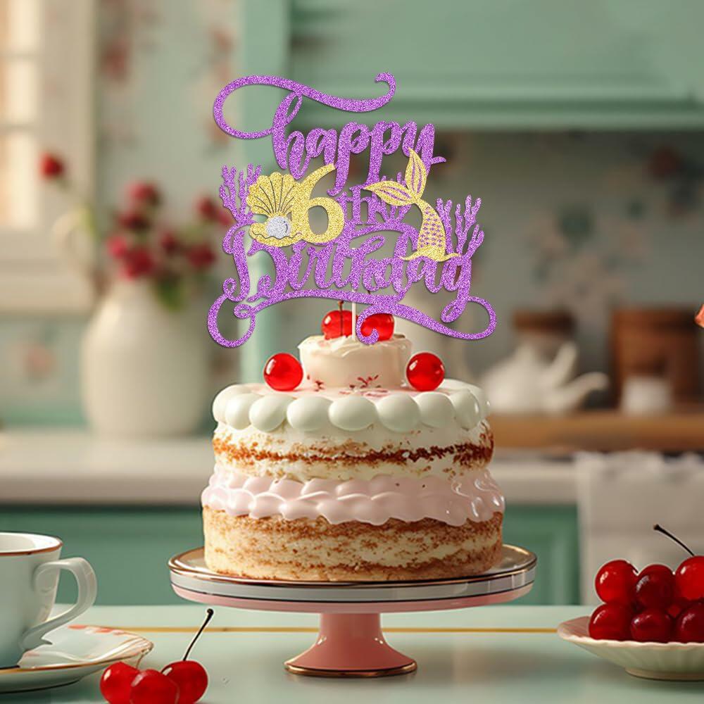 AROKIPPRY Mermaid Happy 6th Birthday Cake Topper Under The Sea Theme