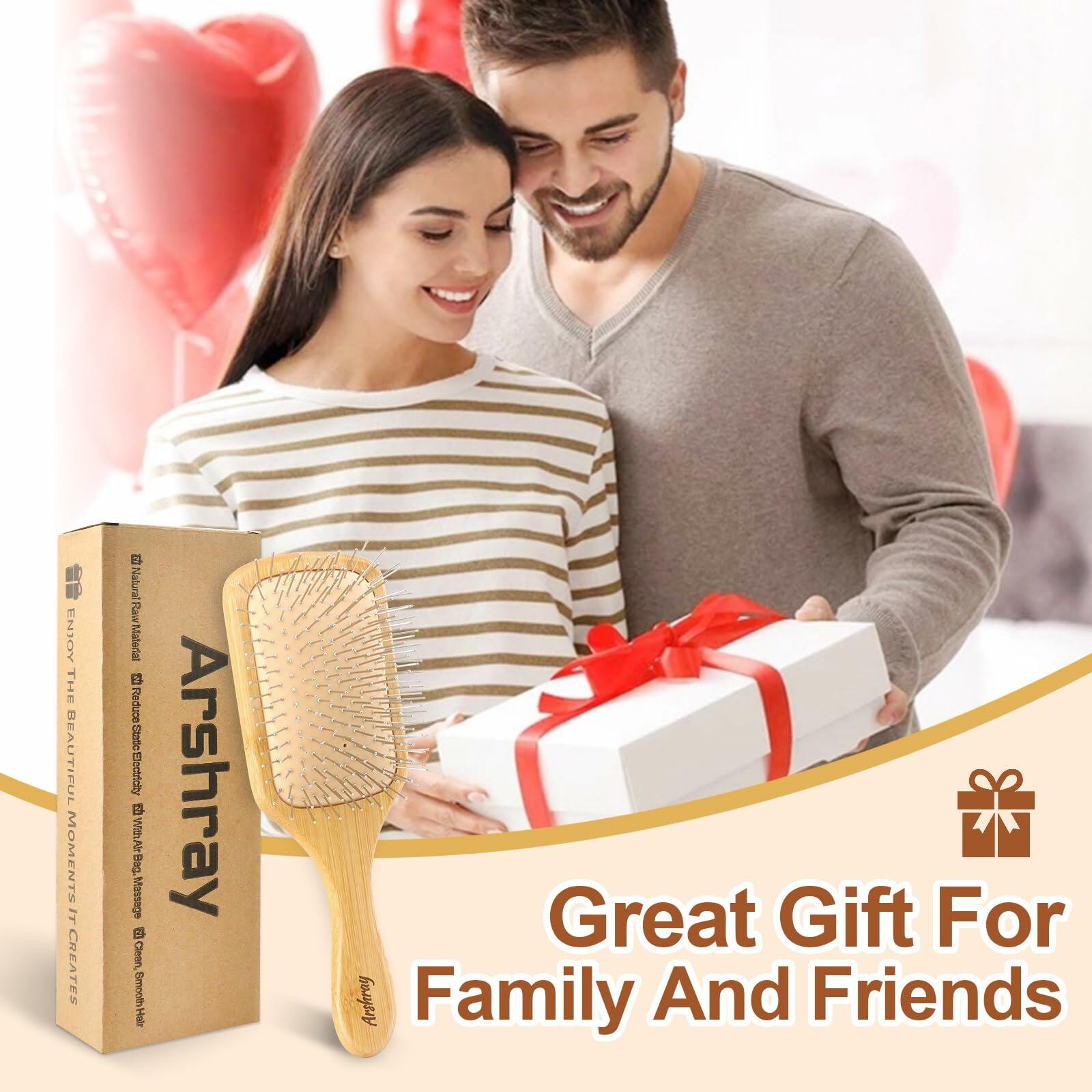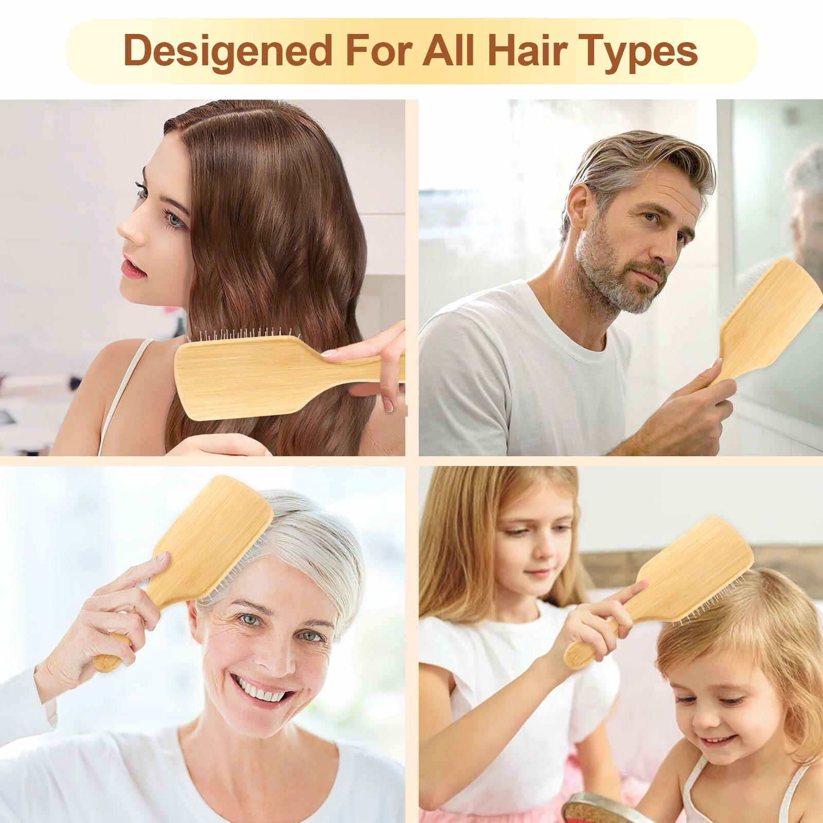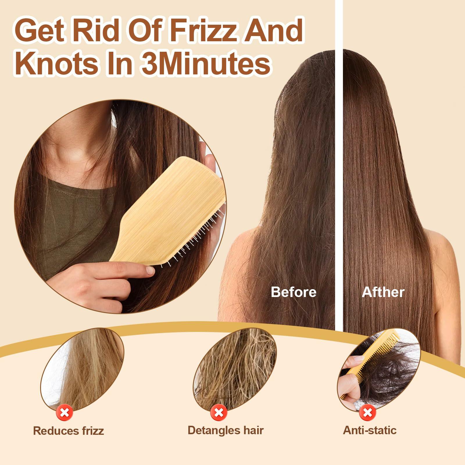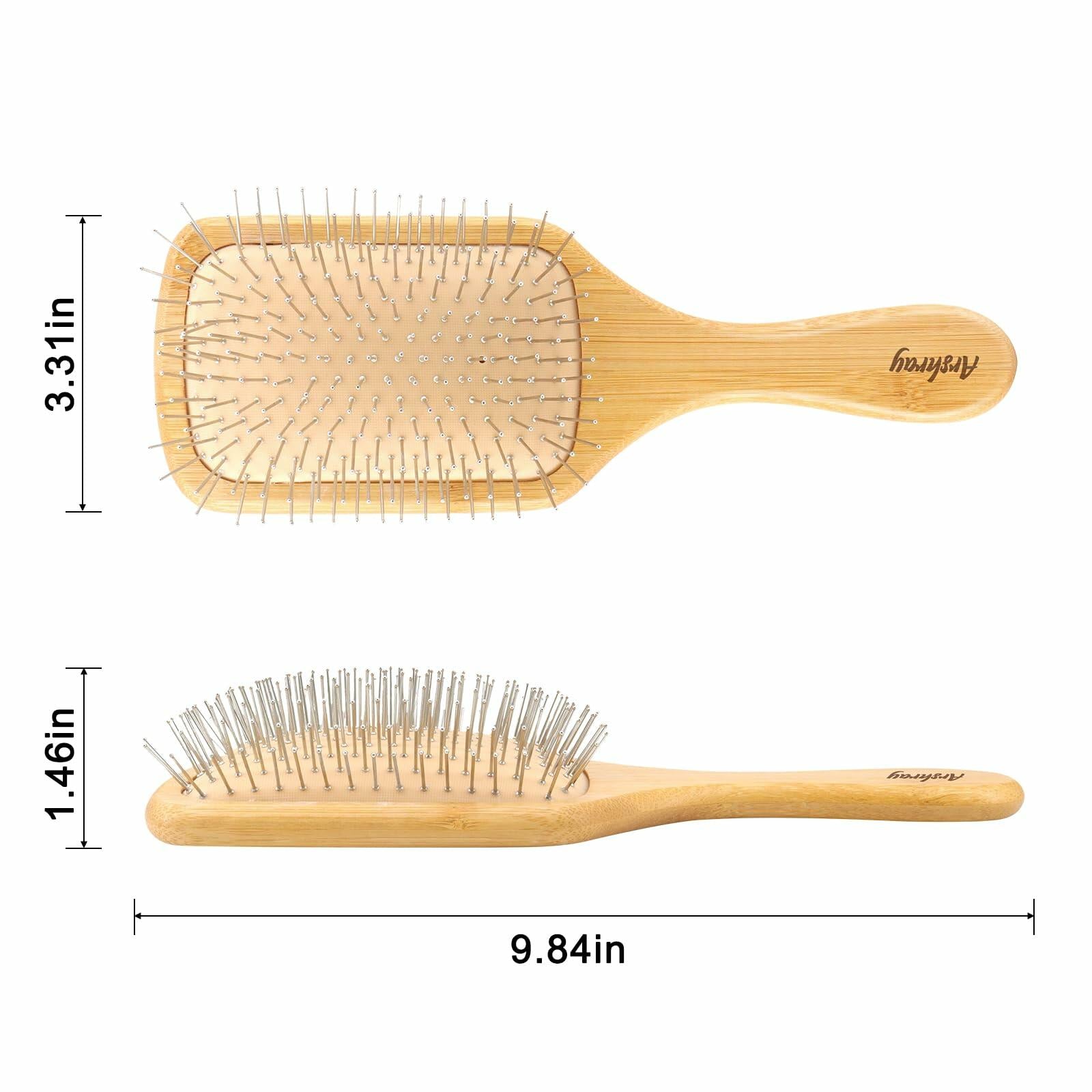 Arshray Bamboo Paddle Hair Brush Stainless Steel Teeth All Hair Types