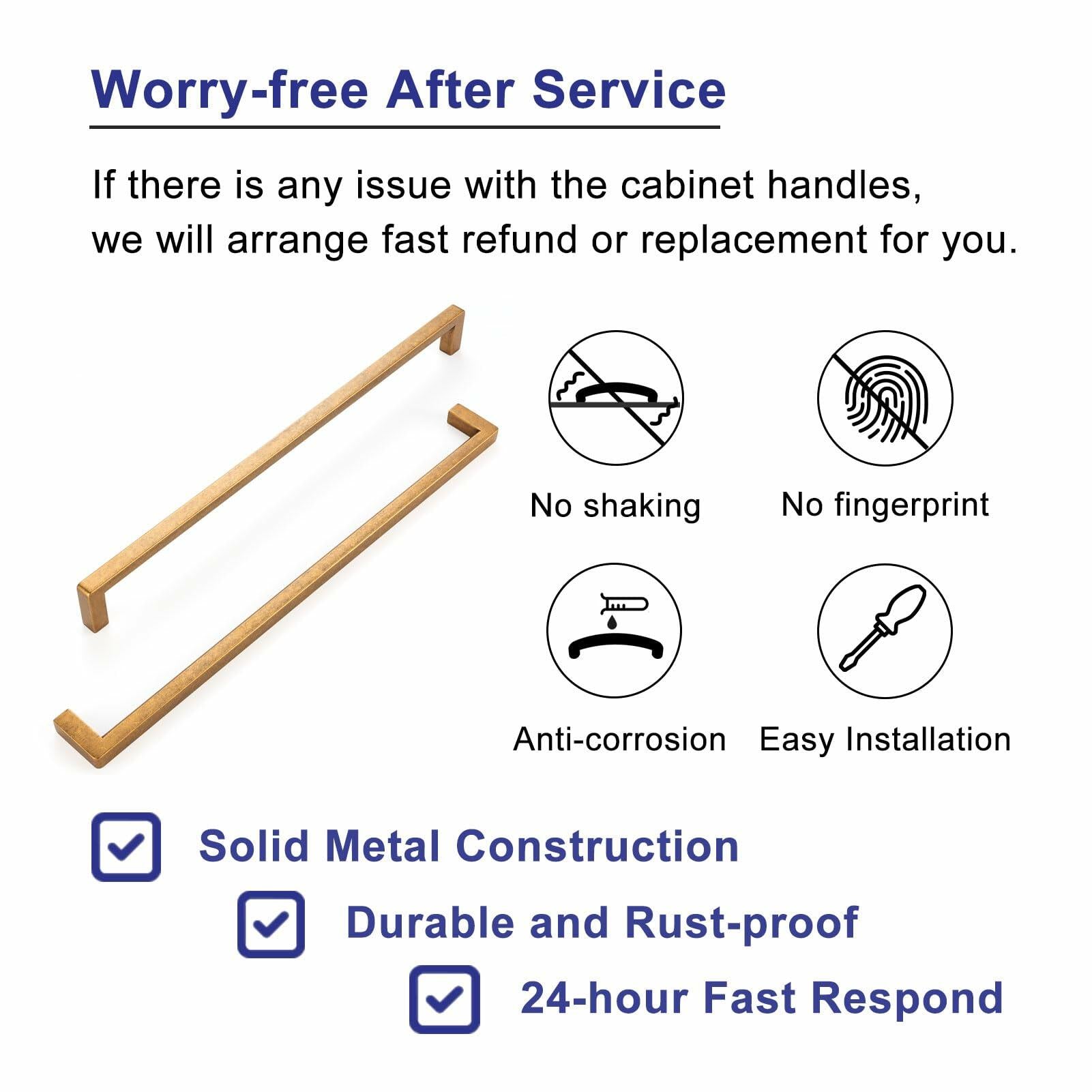 - Material & Color & Design: Made of zinc alloy in antique brass, durable and rust-proof; the underside of the grip is curved for a smooth and comfortable feel.