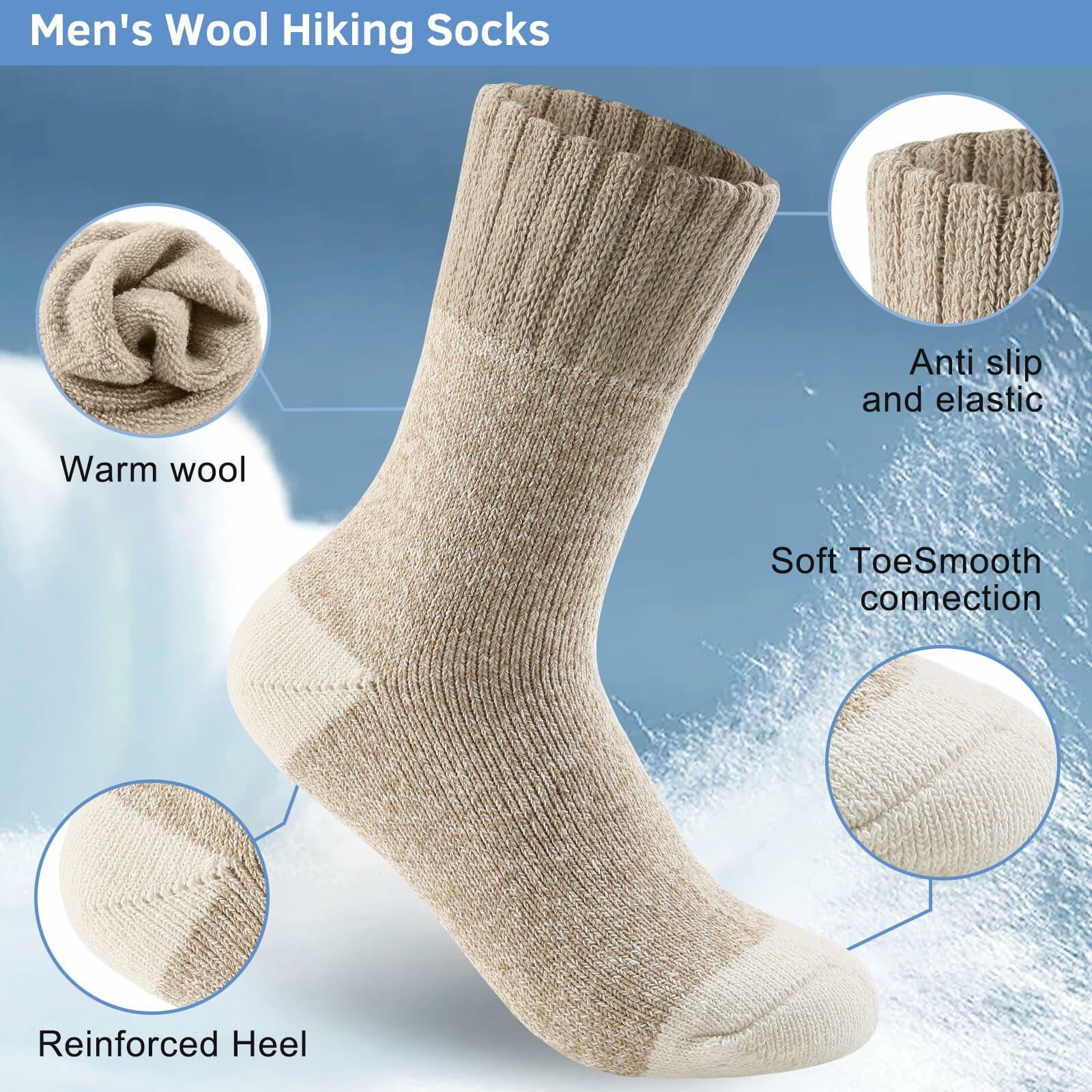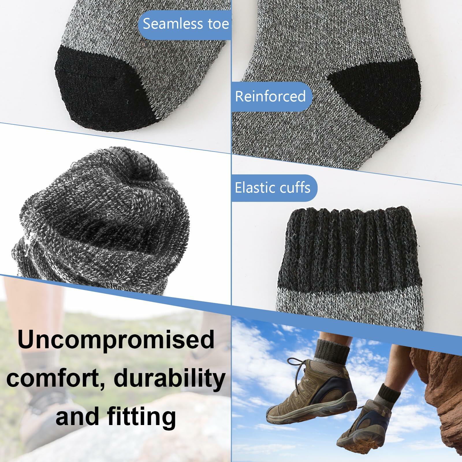 - WOOL SOCKS MENS:These men's merino wool socks are crafted from a high-quality blend of wool and cotton, ensuring they are thick, soft, and incredibly warm. The premium materials offer exceptional comfort and breathability