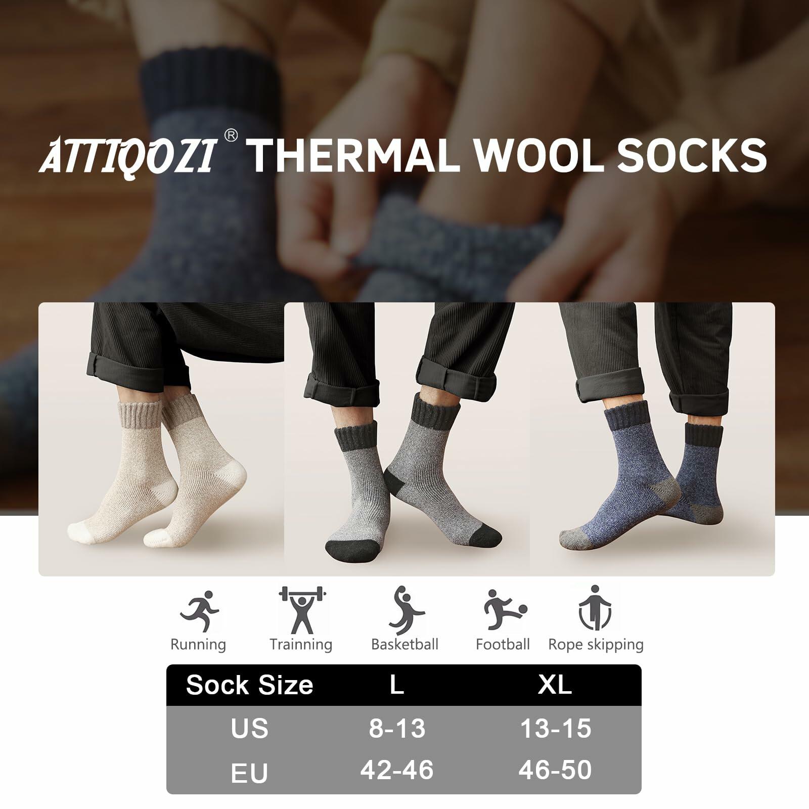 - THERMAL SOCKS FOR MEN: ATTIQOZI Mens thermal woolsocks are like a stove during cold and chilly winter, keeping your feet warm and cosy all winter long. Mens winter socks have a great relief of foot pressure.