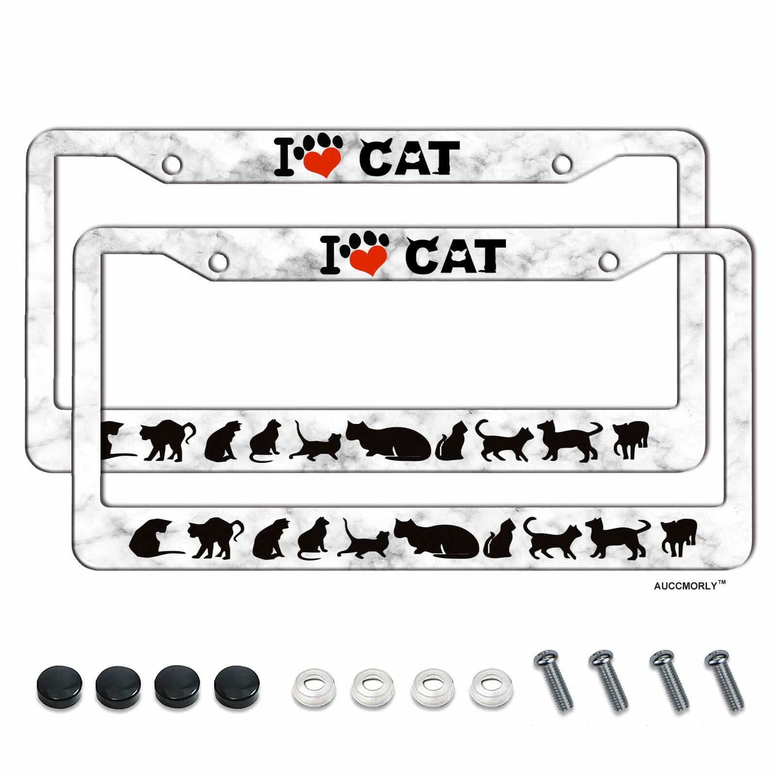 AUCCMORLY Stainless Steel Cat License Plate Frame Car Accessories 2 Pcs Set