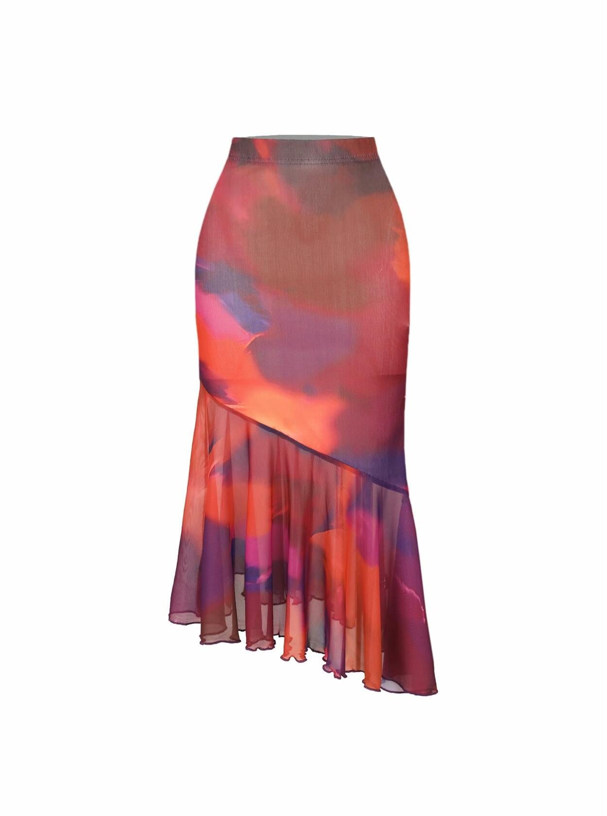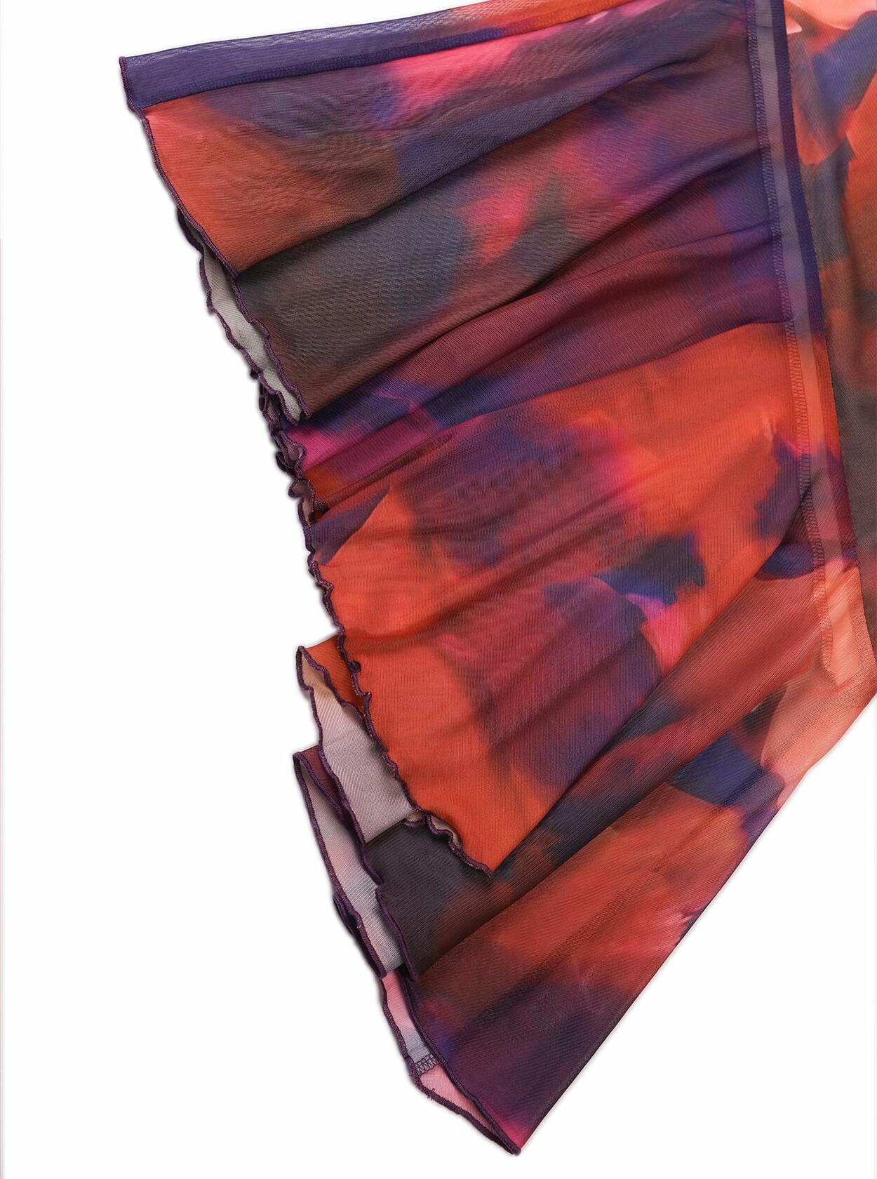 Avanova Women Tie Dye Mesh Ruffle Mermaid Midi Skirt Purple Size M