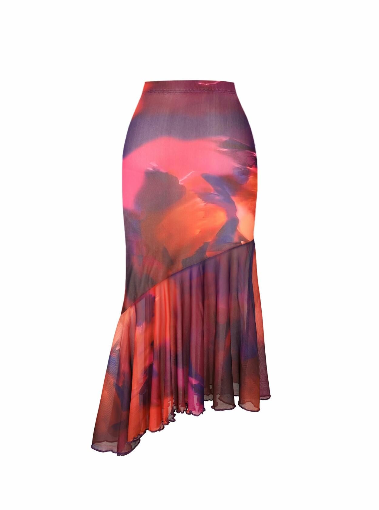 Mesh Boho Floral Ruffle Mermaid Bodycon Skirt High Elastic Wasit Midi Skirt for WomenMaterial: Womens mesh midi skirt, made of 95% polyester 5% elastane, soft and stretchy to wearPattern Type:The floral print adds a playful and bohemian flair, giving the skirt a unique and stylish lookClosure: Elastic Waistband design makes it comfortable and easy to wearWaist: High waisted design of this skirt adds a touch of sophistication and elegance to any outfit, making it a versatile piece that can be dressed up or down for any occasionStyle: Casual & Fashion & Cute & OfficeFitted: Regular fit skirt will give you a comfortable and classic silhouette, suitable for everyday wear Season: Ideal for Spring, Summer and FallColor: blackLength: Midi length provide a fashion look that is versatile for various occasionsOccasion: High rise black skirt perfect for beach, date, party, vacation, work, business, office, club, shopping, going out or daily wear, wear with your tank top, T-shirt or bandeau top.Color may be slightly different because of light efforts or monitor settings. Size Description:(inch) if you want it more loose, please choose one size up