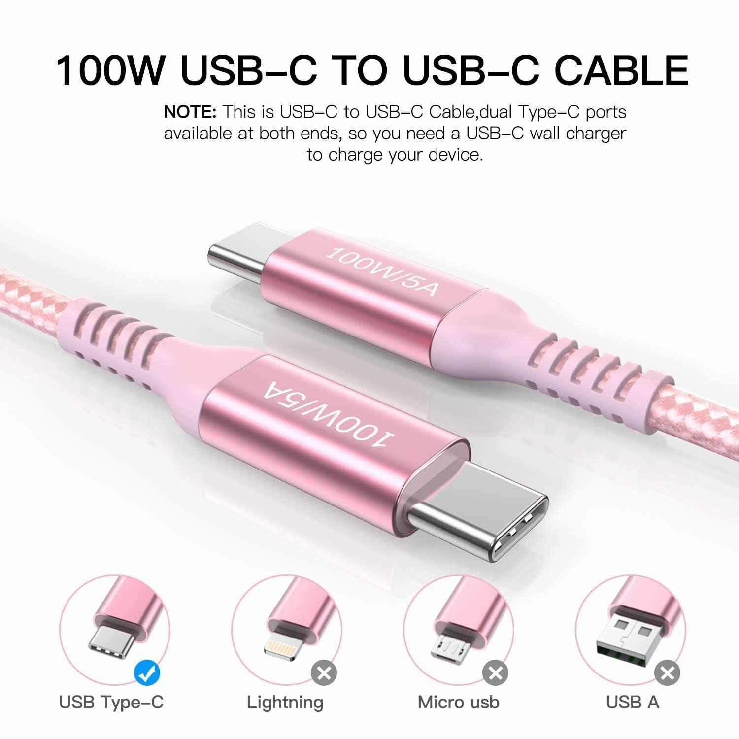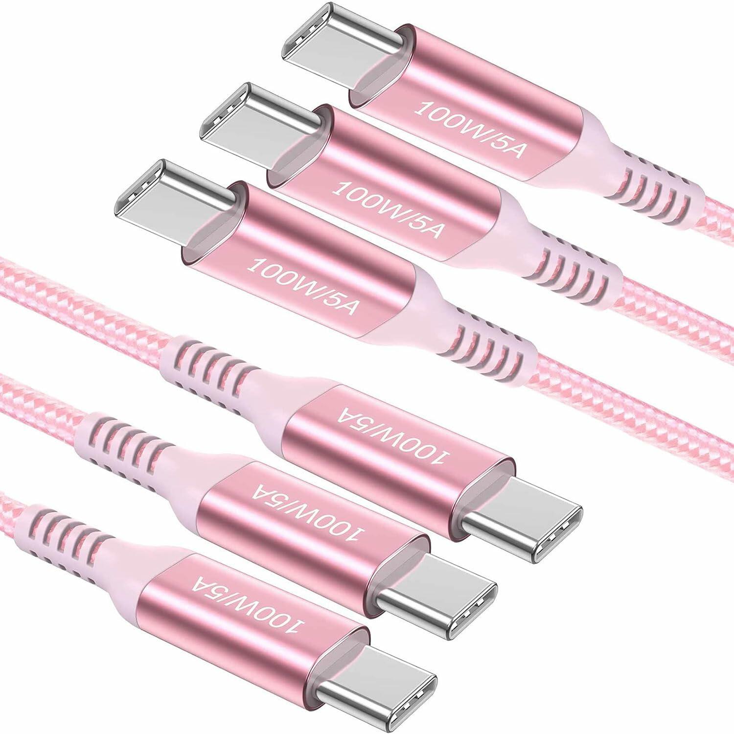 Awnuwuy USB C to USB C Cable 100W Fast Charging Pink 6.6ft 3-Pack