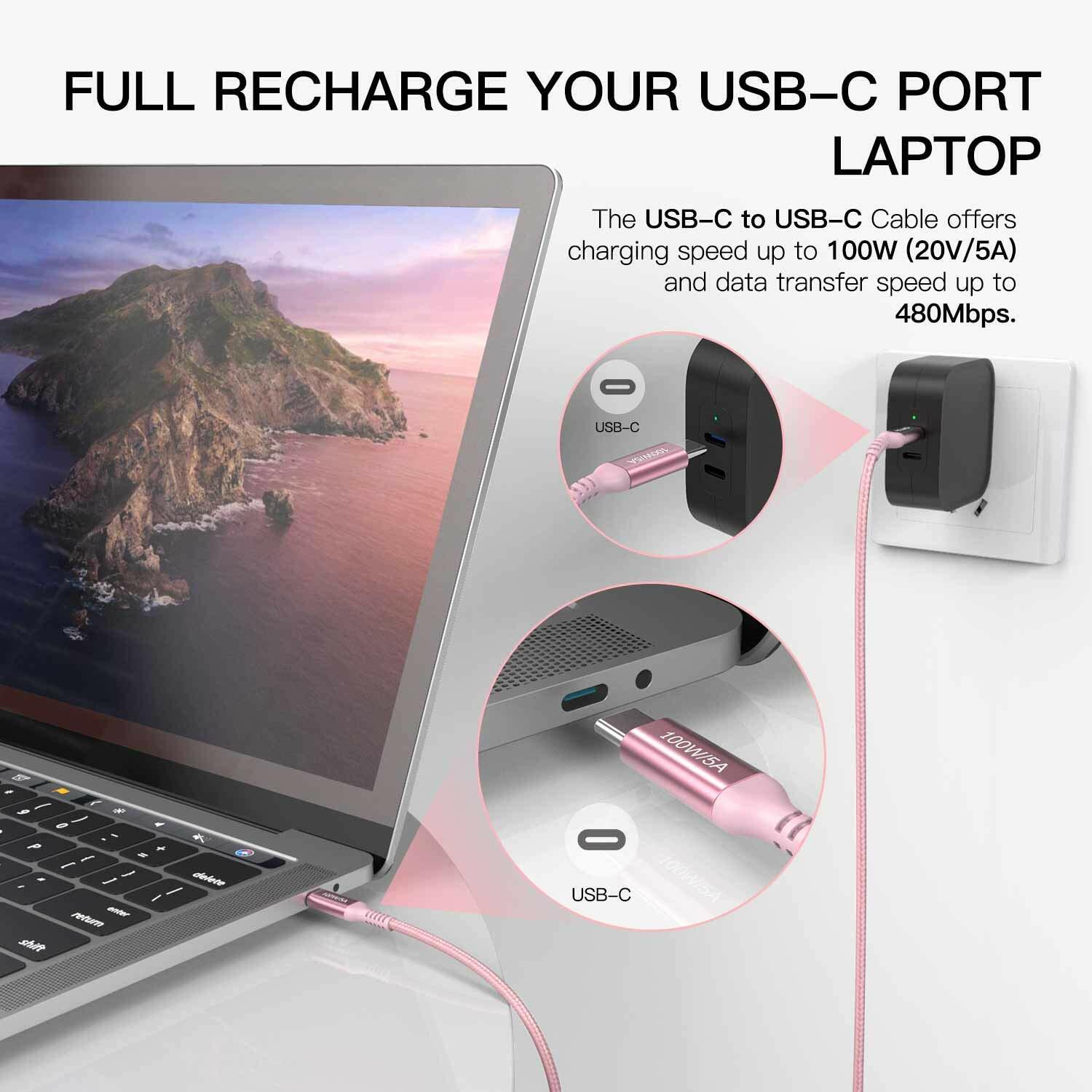 - 【100W USB C Charging Cable】 USB C to USB C 100W Cable support QC/PD fast charging, Safely deliver up to 100W/5A of power. (Note: The actual charging speed depends on your device and wall charging you use with it.)