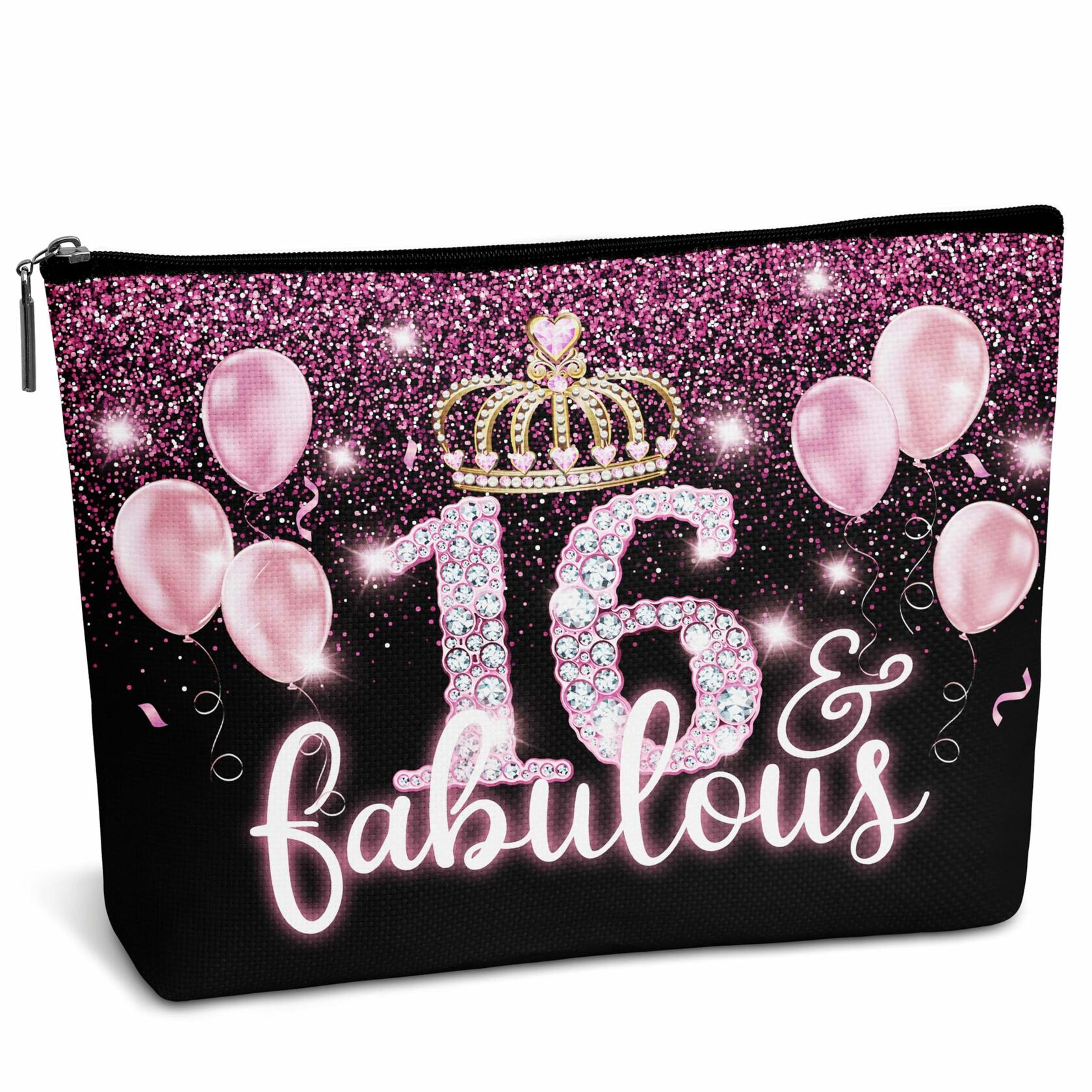 AWSICE Makeup Bag Black Pink 16 Fabulous Birthday Gift for Girls