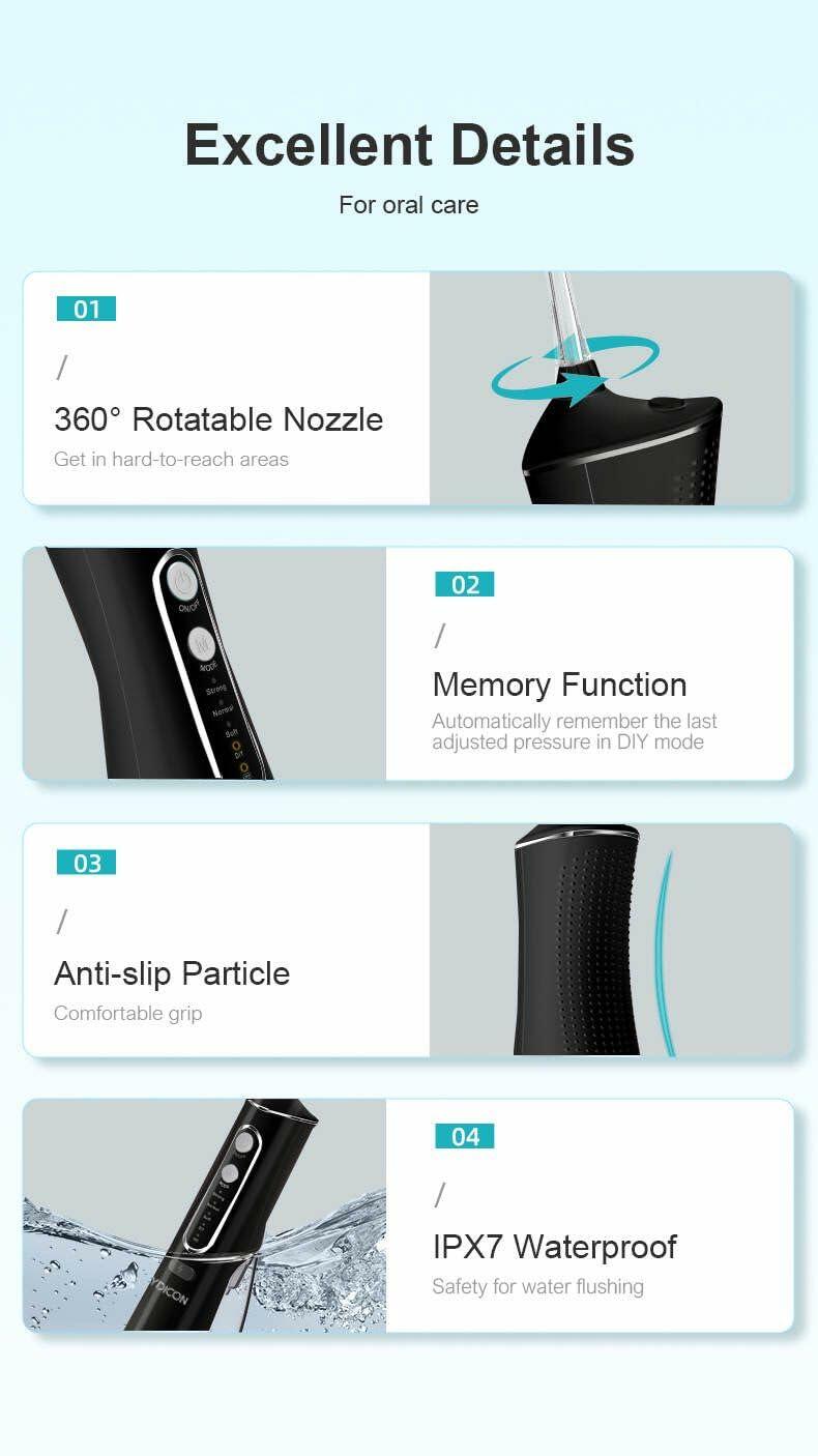 Aydicon Water Dental Flosser Rechargeable 4 Modes 300ML Tank IPX7 Waterproof