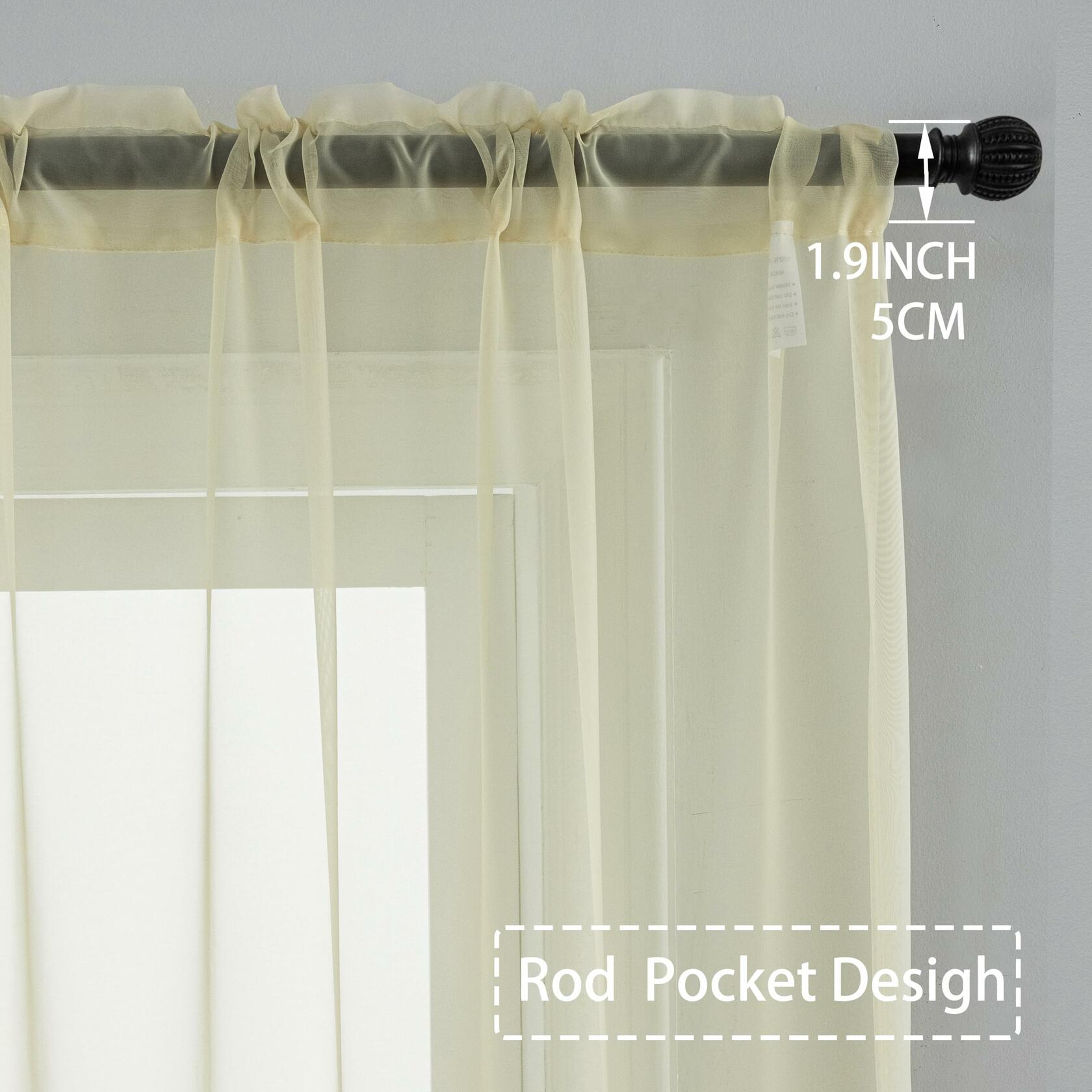 AZRMT Curtains 2 Panels 37x63in Light Filtering Sheer Rod Pocket Soft Beige