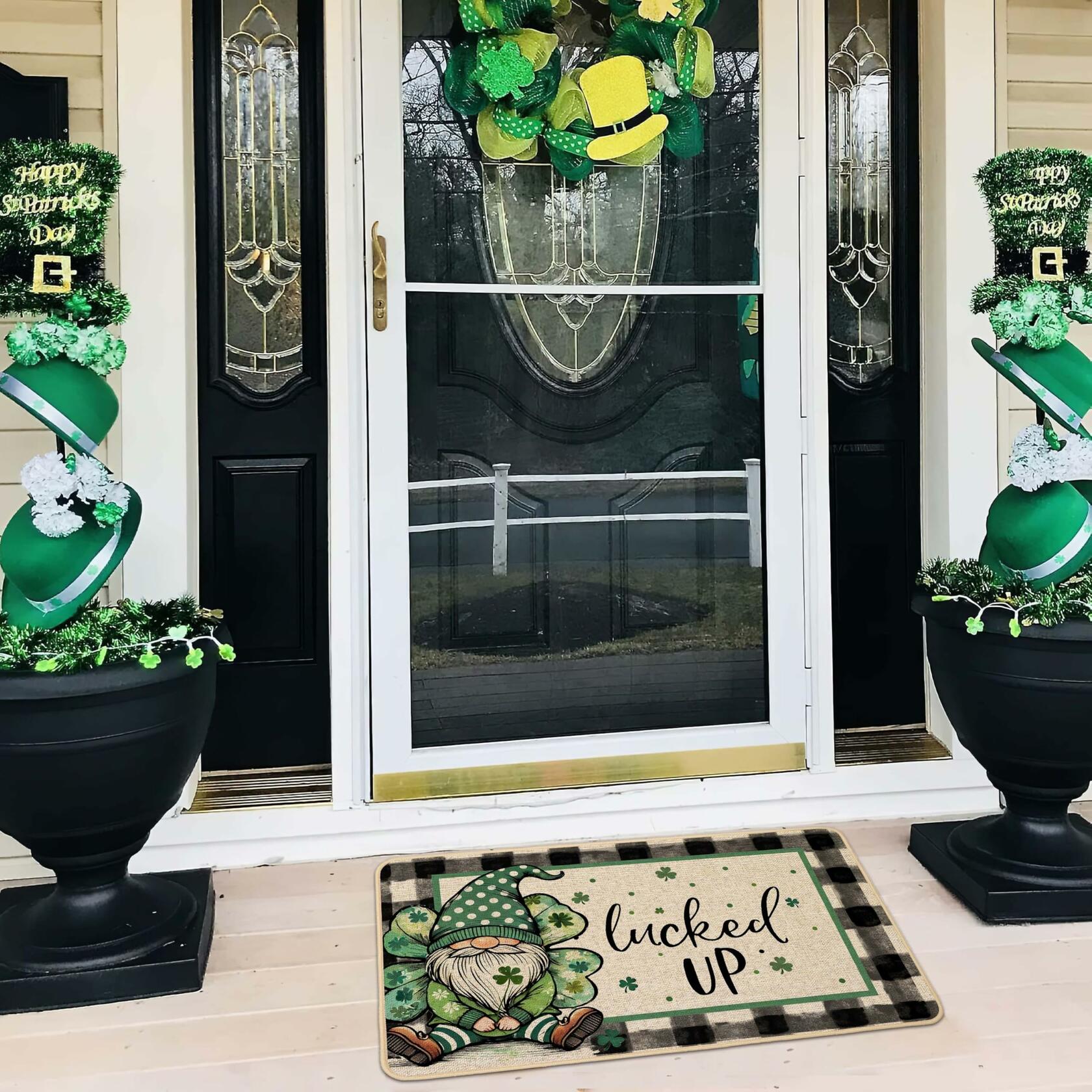 - Wear Resistant & Non-Slip: St Patrick's Day door mat is designed with durable burlap on the surface that helps to form a retention dam to trap dirt, mud and slight moisture from tracking into your home. Decorative outdoor door mat has a non-slip rubber back so it won’t shift or slide. So it's very suitable as a outdoor entrance door mat or welcome mat.