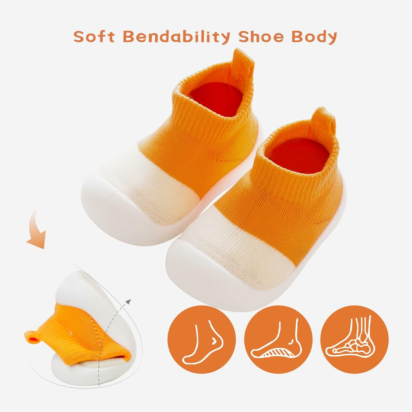- Great Elasticity Upper: First walker shoes for baby feature a stretchy Lycra upper that wraps around the foot like a sock, providing a comfortable fit that won't constrict your baby's feet