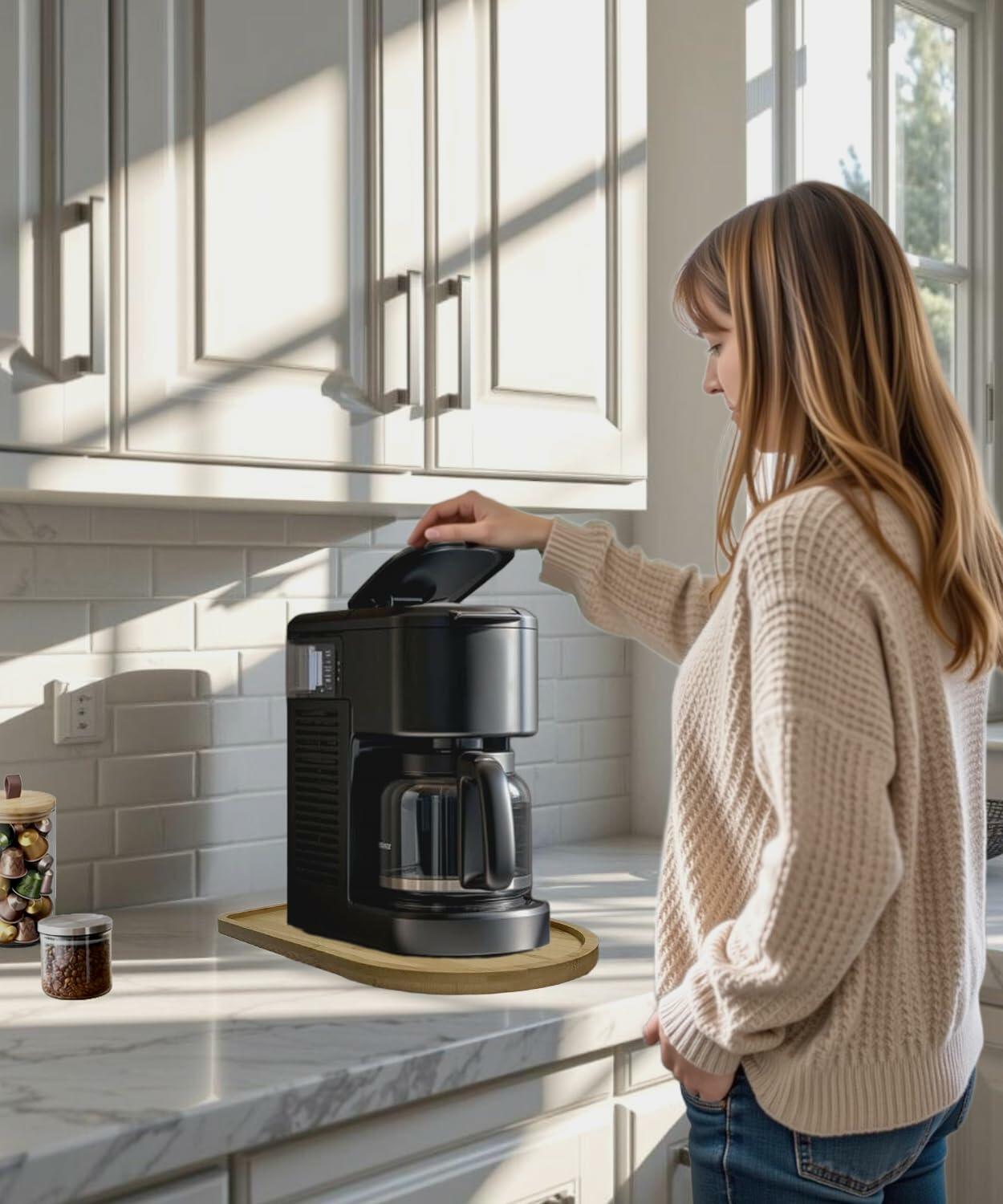 Bamboo Sliding Tray for Coffee Maker Mini Air Fryer Kitchen Counter Mat