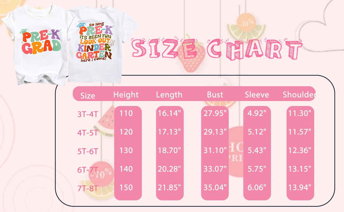 - Features: Cute girls boys pre-k graduation t-shirt, funny double sided letter print, crew neck and short sleeve design, which is very easy to put on and take off. When your baby put on this tshirt, baby will be full of energy and will look a lot cuter.
