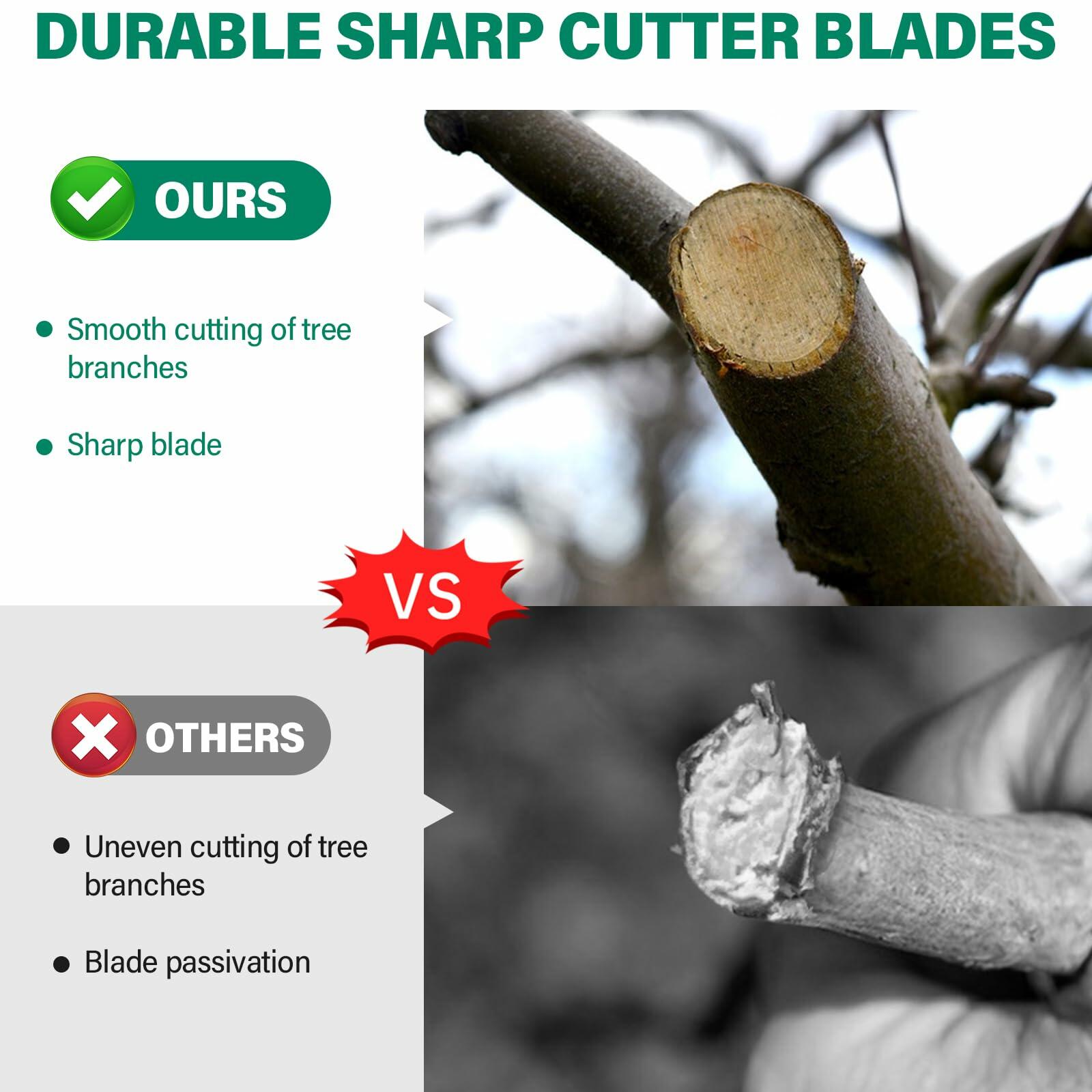 - Ultra-light fiberglass handle: The garden shears handle is ergonomic, ultra-light and non-slip, comfortable to hold, effectively reduces hand fatigue, and is very suitable for long-time cutting and pruning. The inside of the handle is also equipped with an anti-shock cushion (which acts as a shock absorption after cutting thick branches too hard).