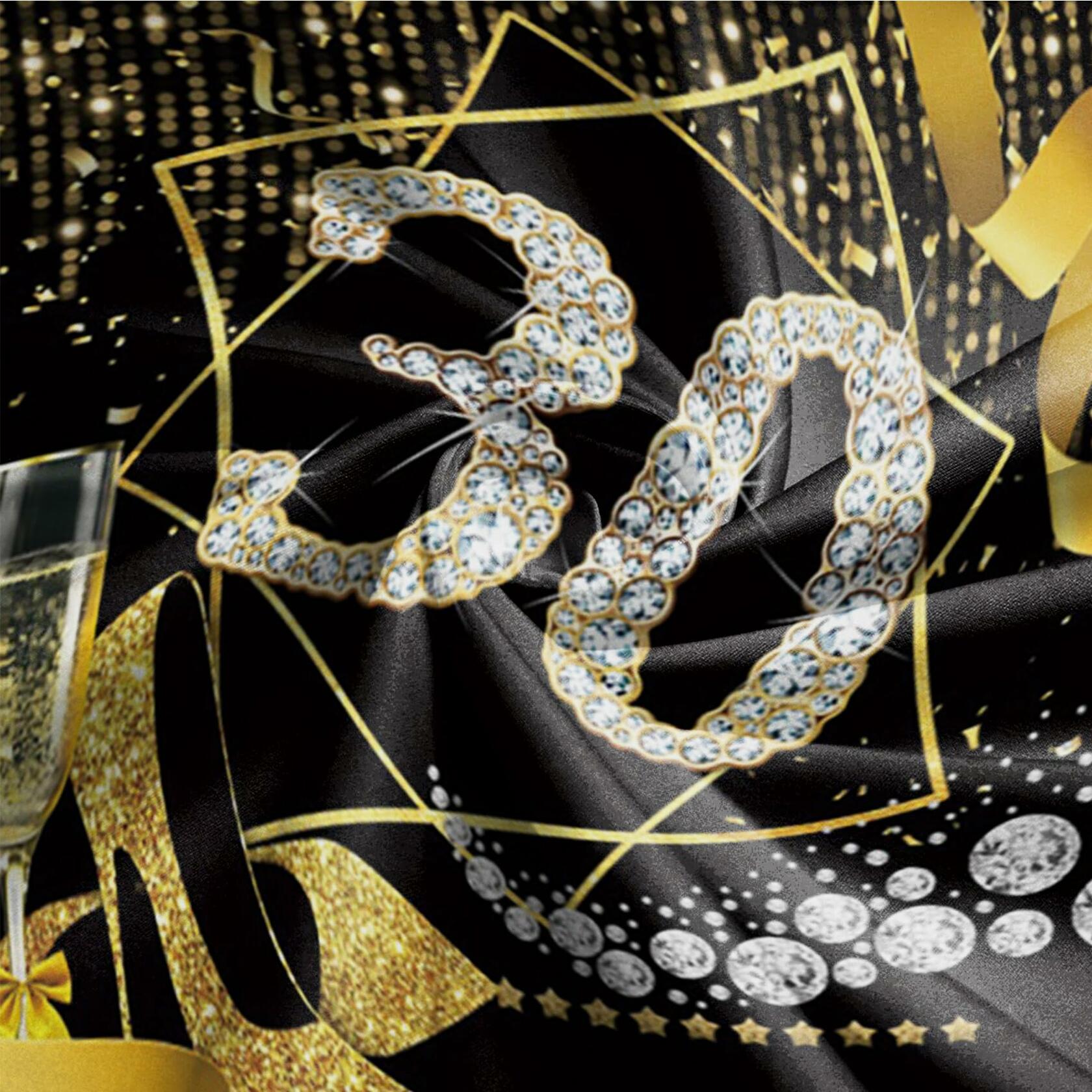 Baocicco 7.5ft 30th Birthday Round Backdrop Black Gold Glitter Ribbon