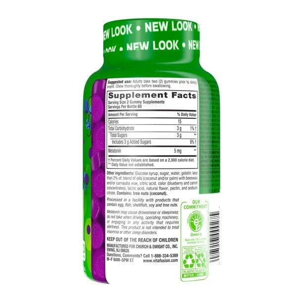 Vitafusion Extra Strength Melatonin Gummy Vitamins offer a delicious and convenient way to support restful sleep. Each gummy contains 5mg of melatonin, a natural sleep aid, to help regulate sleep cycles and promote a good night's sleep. These gummies are free from artificial flavors and sweeteners, providing a tasty and natural solution to occasional sleeplessness. Vitafusion Extra Strength Melatonin Gummy Vitamins provide a tasty and effective solution to help support your sleep needs. With a powerful 5mg dose of melatonin in each gummy, you can enjoy a restful night's sleep naturally and wake up feeling refreshed. DLSD ID: 271622