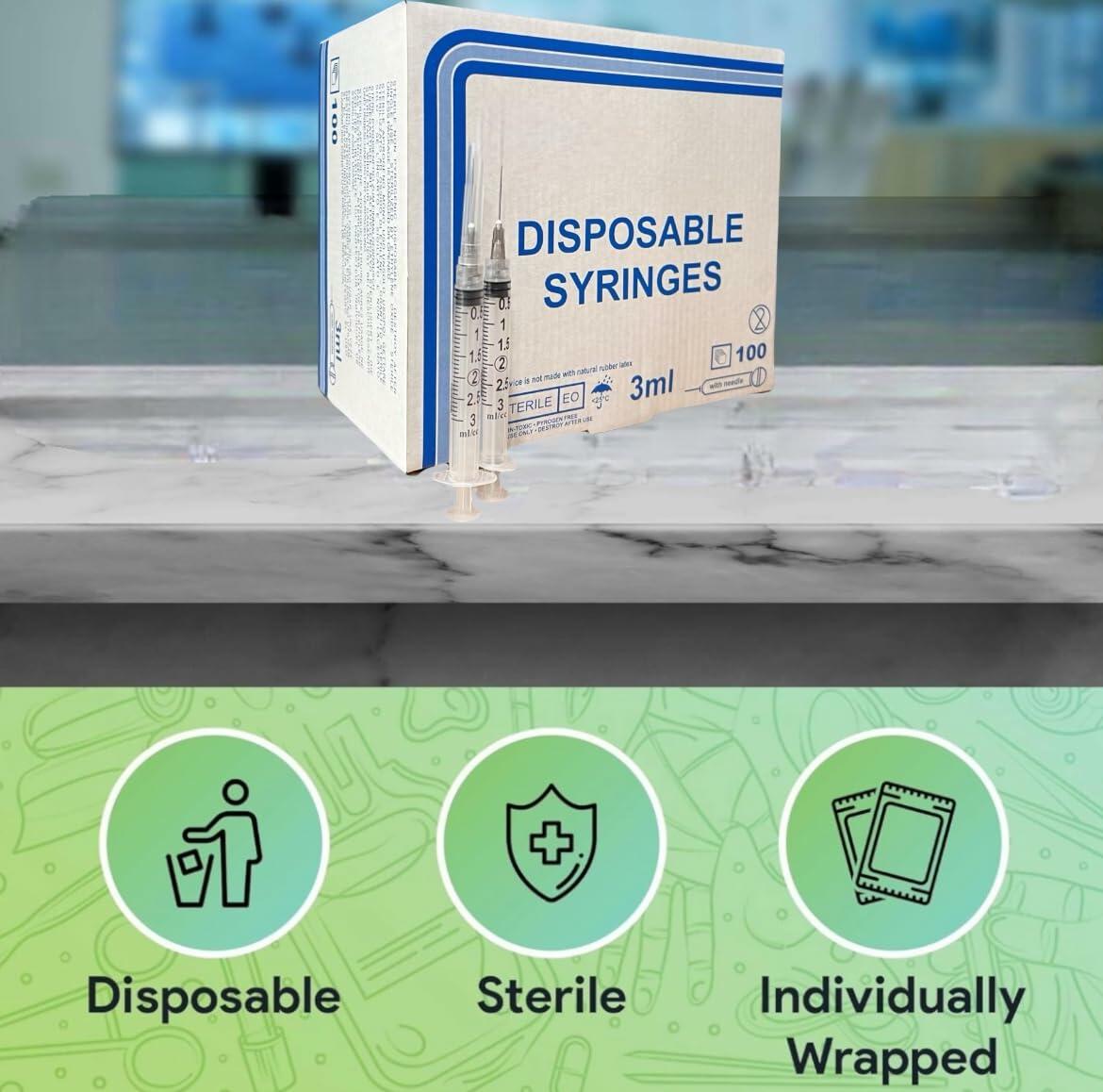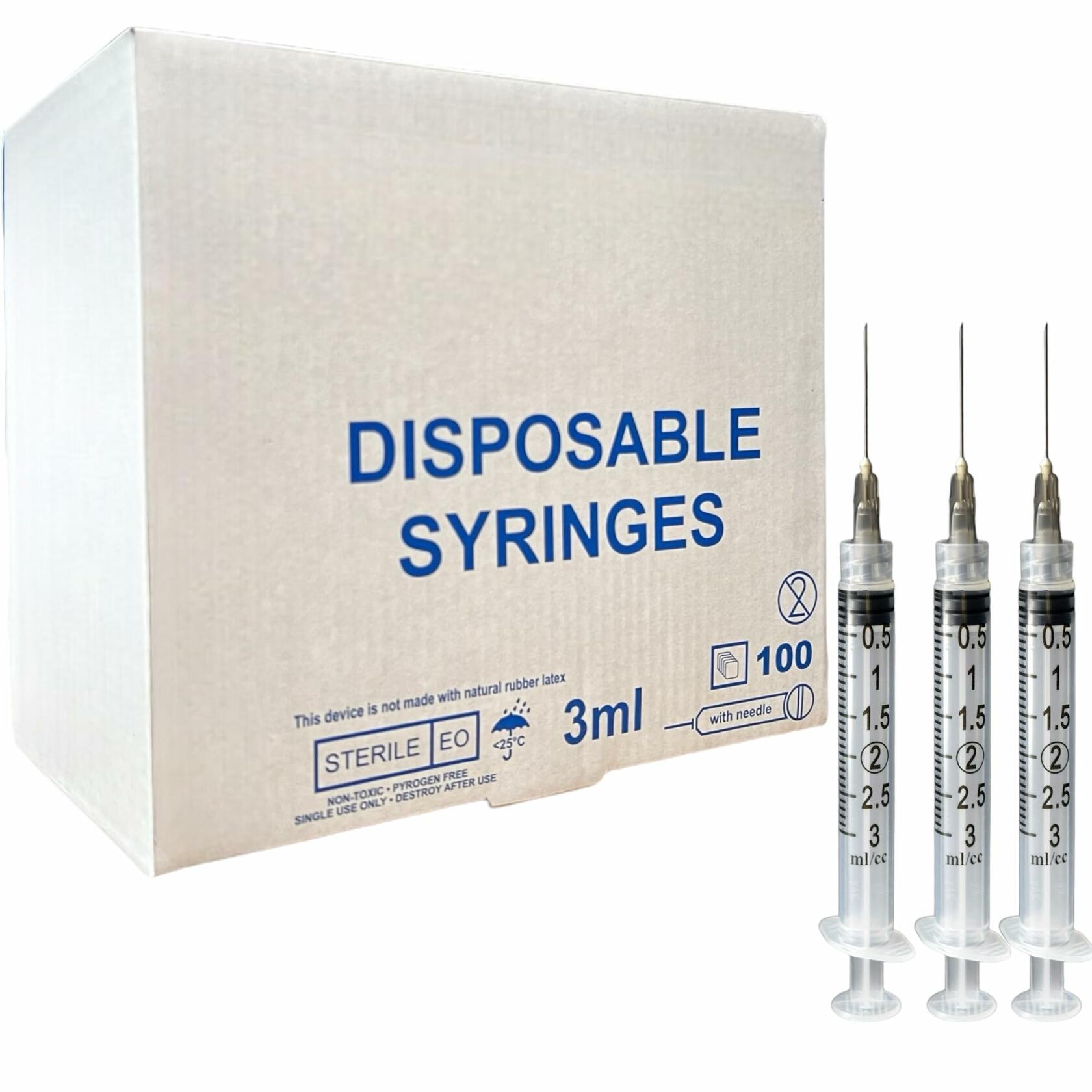 Introducing the ultimate convenience for professionals and home users alike – the 100 Pack 3ml Syringe with Needle from. These disposable syringes are designed for precision and ease of use, featuring a 22G, 1.0 inch luer lock needle with a 0.015 inch diameter. Individually wrapped and each syringe is ready for safe and hygienic use right out of the box. With a generous capacity of 3ml, they're perfect for a wide range of applications. Packaged in a convenient box of 100, you'll never run out when you need them most. 100 Pack 3ml Syringe with Needles for all your syringe needs, and experience the confidence that comes with top-quality supplies.