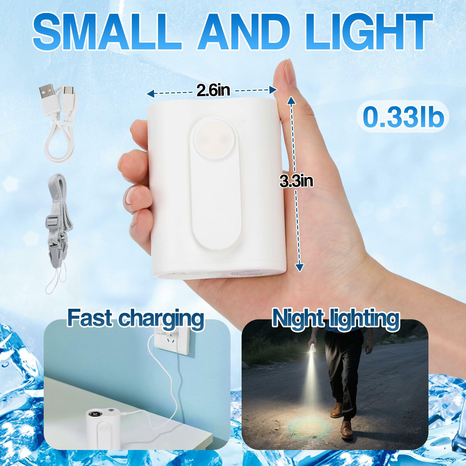 - Ultra-Portable & Hands-Free Design: This portable waist fan weighs just 5.4oz—lighter than a smartphone! Measuring only 3.5 x 2.8 x 2 inches, it’s easy to carry and includes a lanyard so you can clip it to your belt or wear it around your neck for all-day hands-free use.