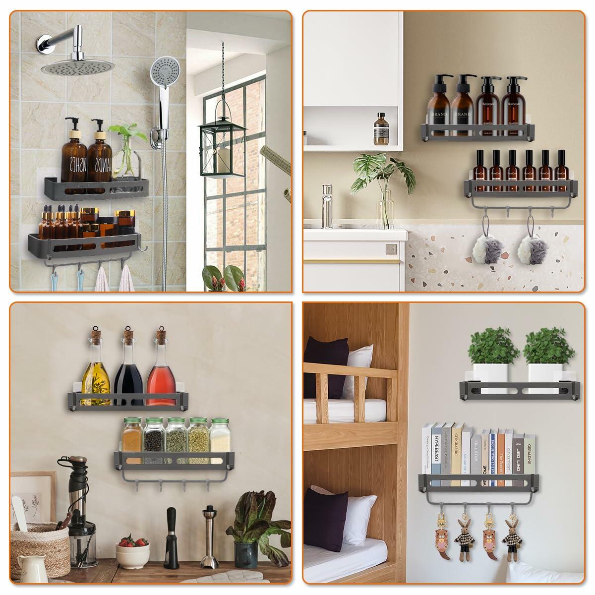 - 【Versatile Use】: The shower holder feature a simple yet stylish design that complements various home decor. These space-saving shelves can be used in the bathroom, kitchen, or anywhere you need extra storage. The shower shampoo holder features smooth rounded corners that won't scratch your skin.