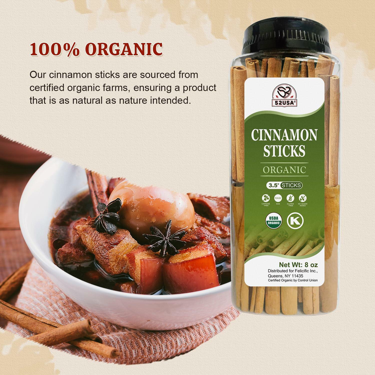 BestBy 7/27 52USA Organic Cinnamon Sticks 8oz USDA Kosher Gluten Free Raw