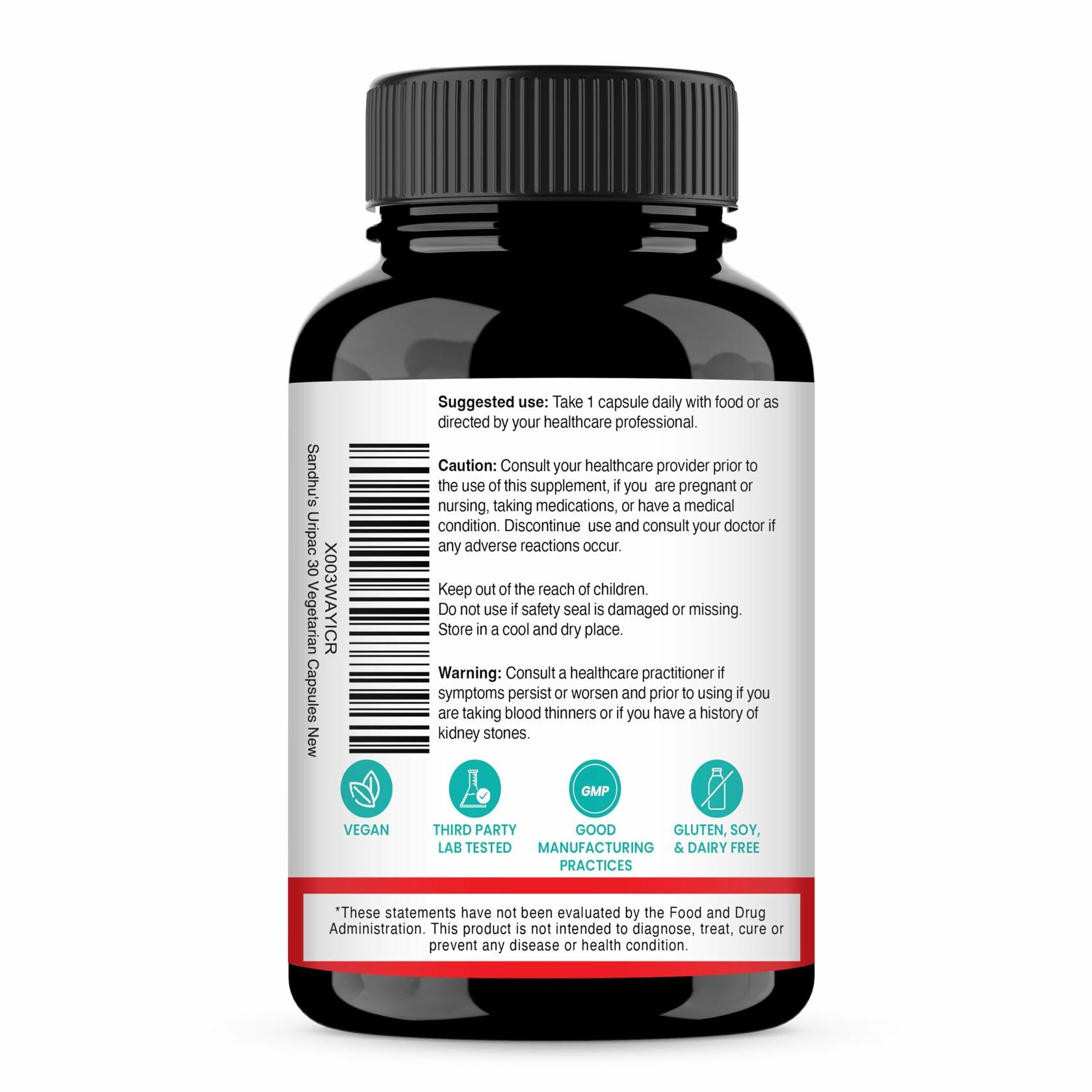 - QUALITY ENSURED – Sandhu's urinary health supplement is encapsulated in vegetarian-friendly capsules and the supplement is gluten-free, soy-free, dairy-free; Third-party tested and made in NSF-certified facility. cGMP compliant.