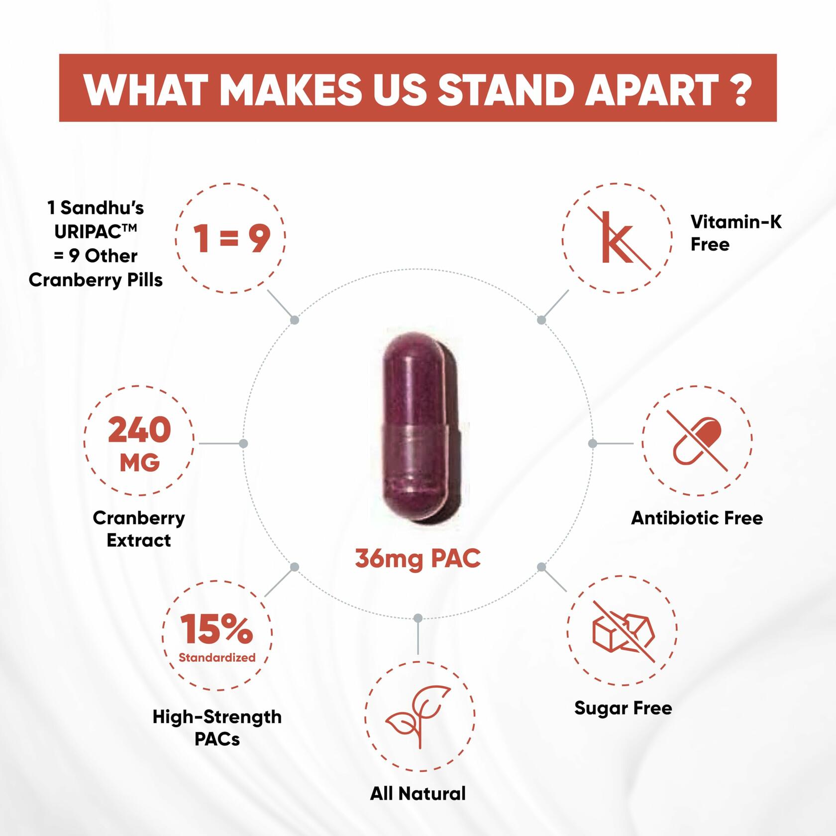 - BENEFITS & USE: Made with natural ingredients, Sandhu's Uripac is made from pure cranberry juice extract, which makes it both highly potent and effective in helping to maintain a clean urinary tract.