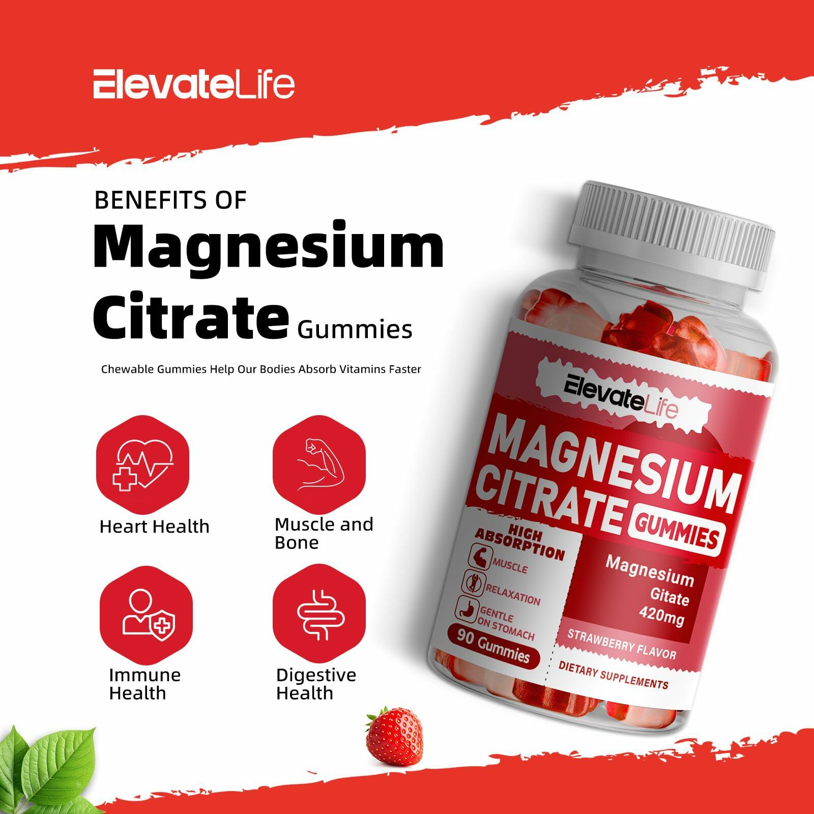BestBy09/26 ElevateLife Magnesium Citrate Gummies 420mg 90 Vegan Strawberry