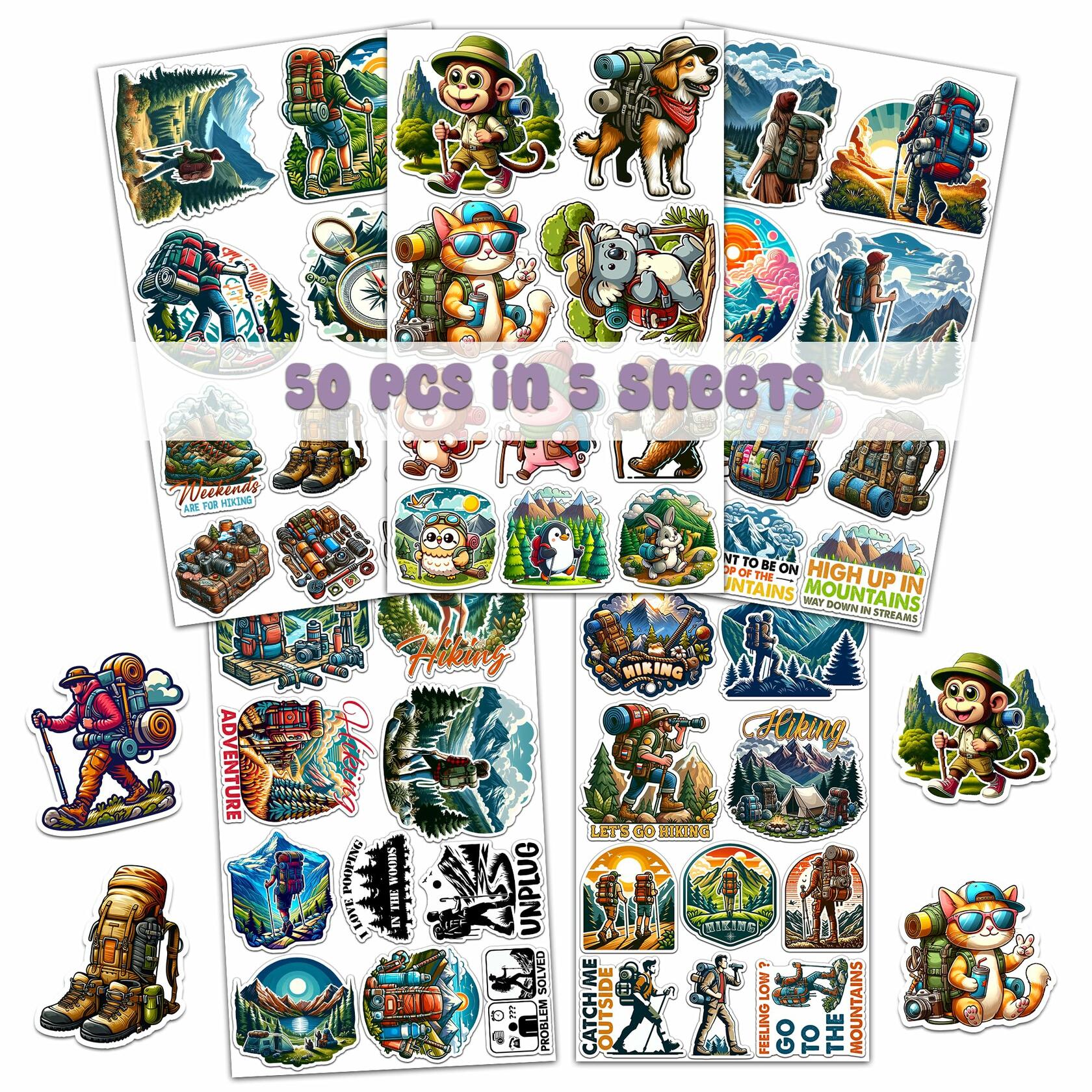 BIGZORO 50 PCS Wilderness Hiking Waterproof Vinyl Stickers Decals Outdoors
