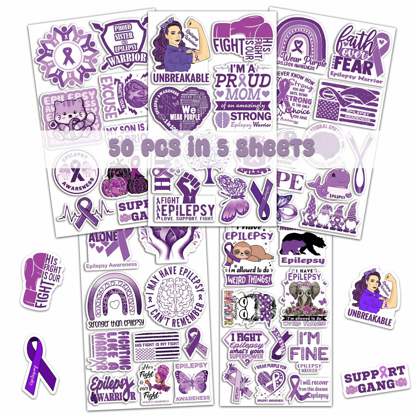 BIGZORO 50PCS Epilepsy Awareness Stickers Ribbon Vinyl Decals Waterproof