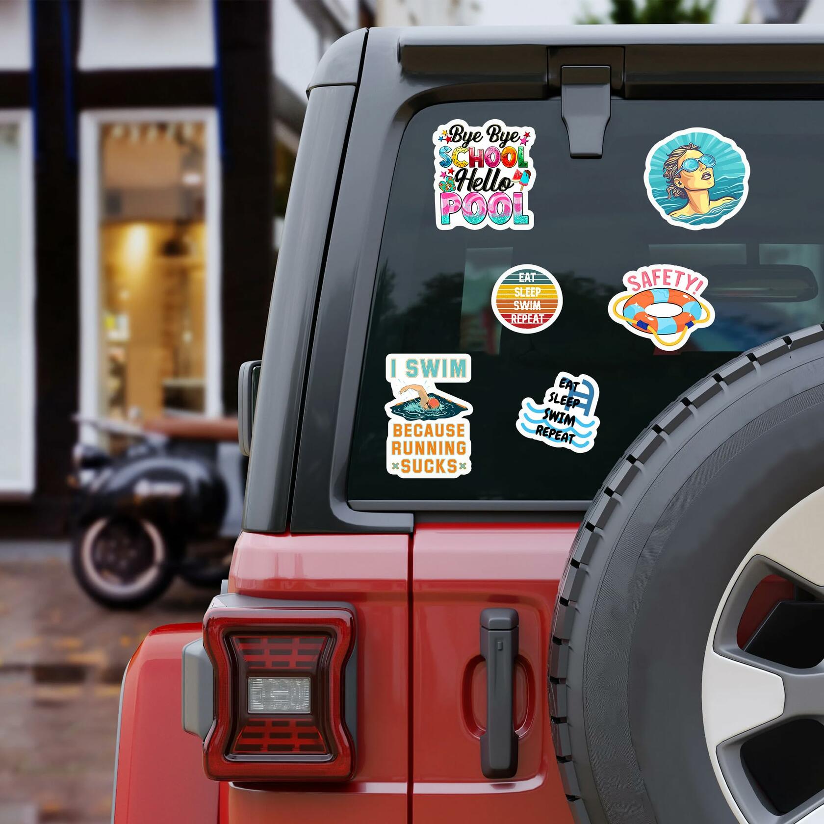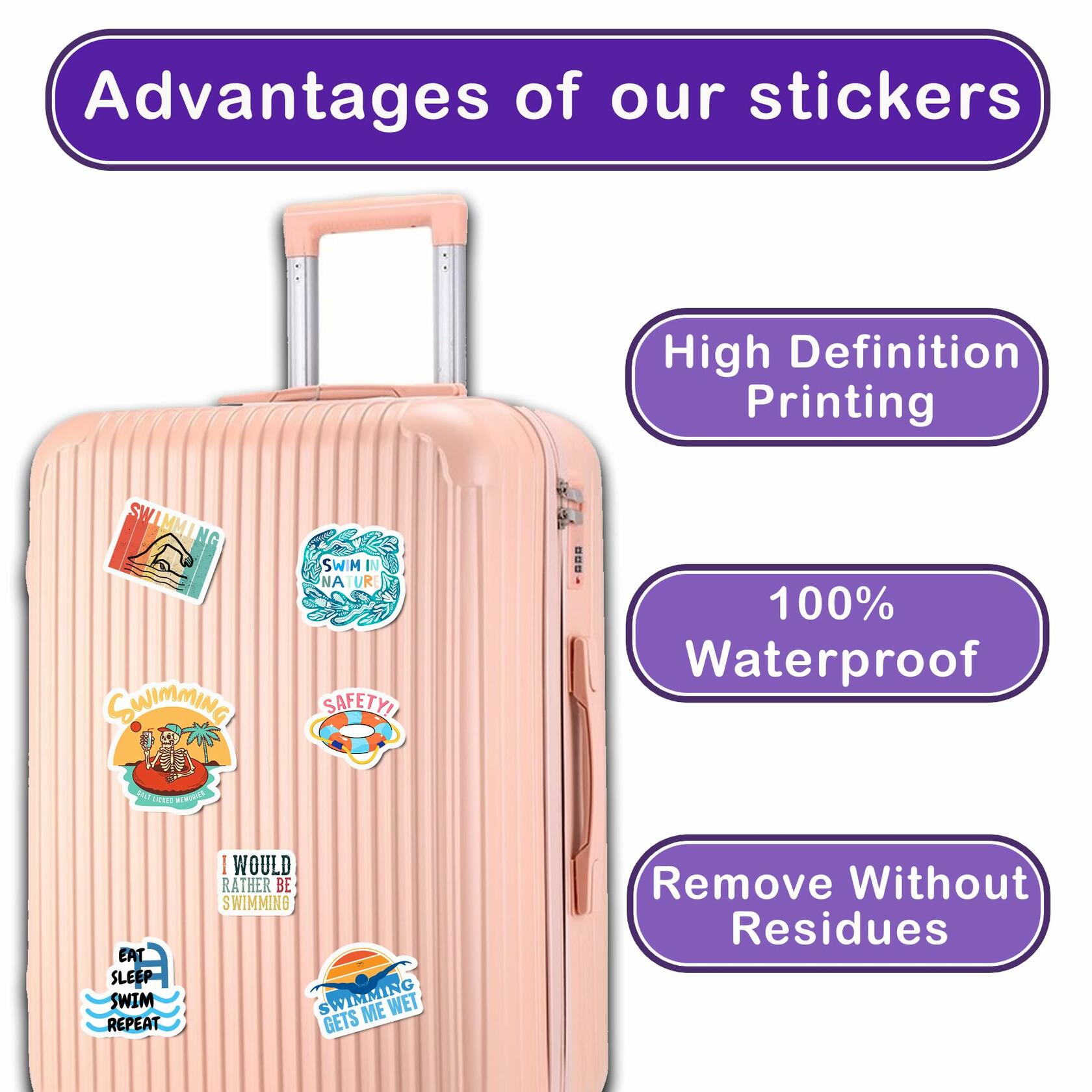 BIGZORO 50PCS Waterproof Swimming Stickers Decals Vinyl for Laptop Water Bottles