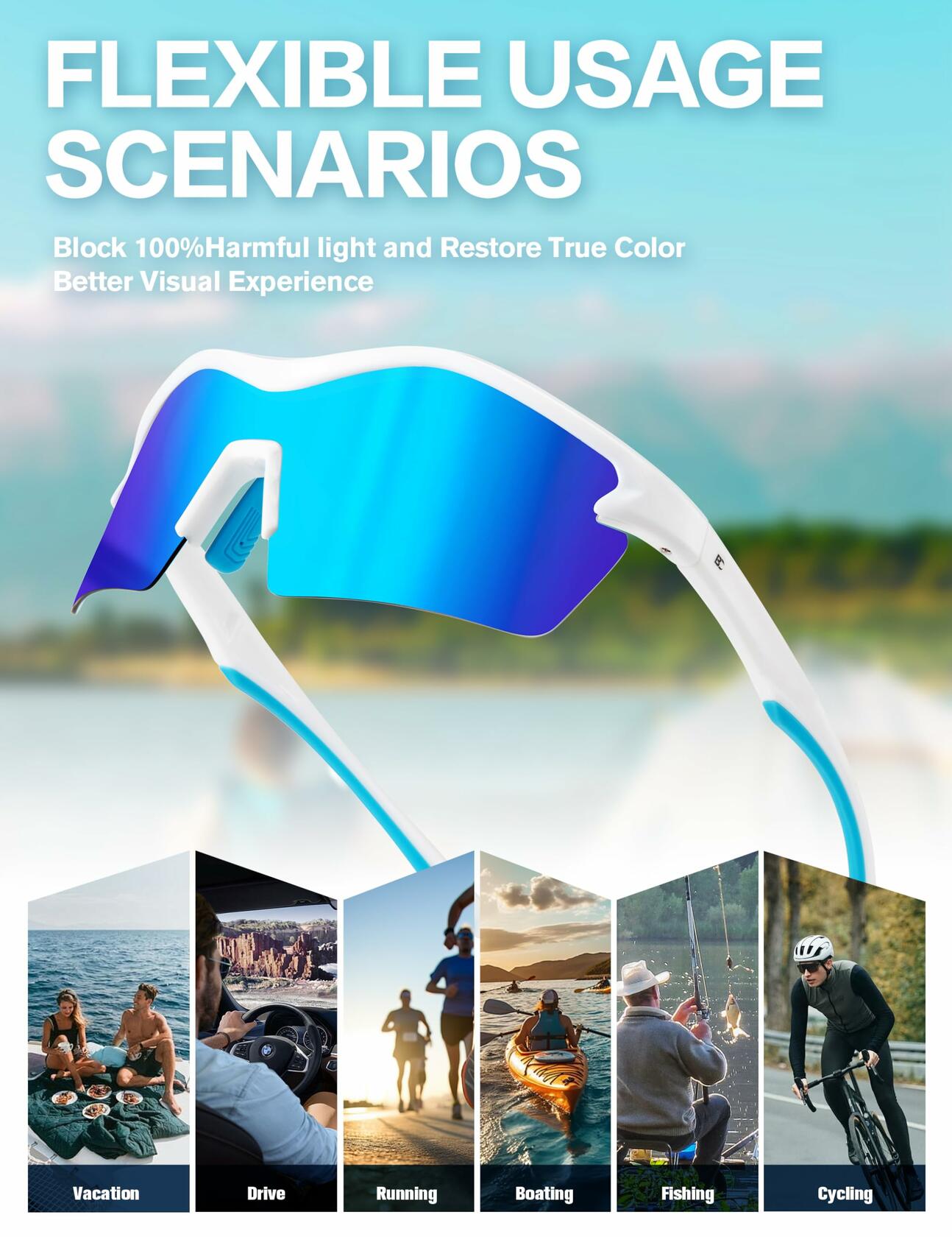 - 【UV400 Protection Baseball Sunglasses】No more squinting or worrying about UV damage! These baseball glasses offer full UV400 protection, effectively blocking 100% of harmful UVA and UVB rays. Whether you're under blazing sun or shifting light conditions, your eyes stay safe, comfortable, and ready for the next challenge. Enjoy your outdoor experiences longer and healthier with our cycling sunglasses for men!