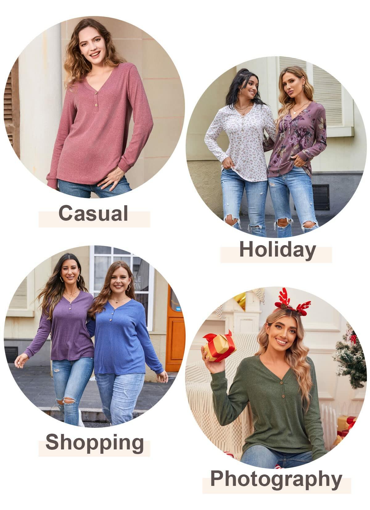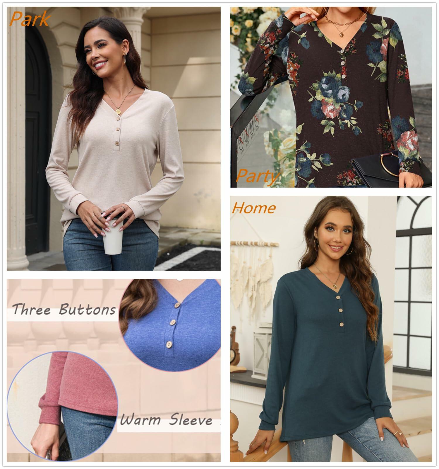 Hello! Welcome to BISHUIGE store! Here, we will provide you with sincere and enthusiastic service, and you can also choose satisfactory fashion items. BISHUIGE Women's Button T-Shirt Long Sleeve Henley Top V-Neck Casual Sweatshirt You'll be cute and sexy with this button-down V-neck tunic. The fabric is soft, comfortable and warm, suitable for spring, autumn and winter. Can be worn alone or with a denim jacket. It is characterized by strong fall resistance and good flexibility. Making every piece of clothing well has always been our pursuit.