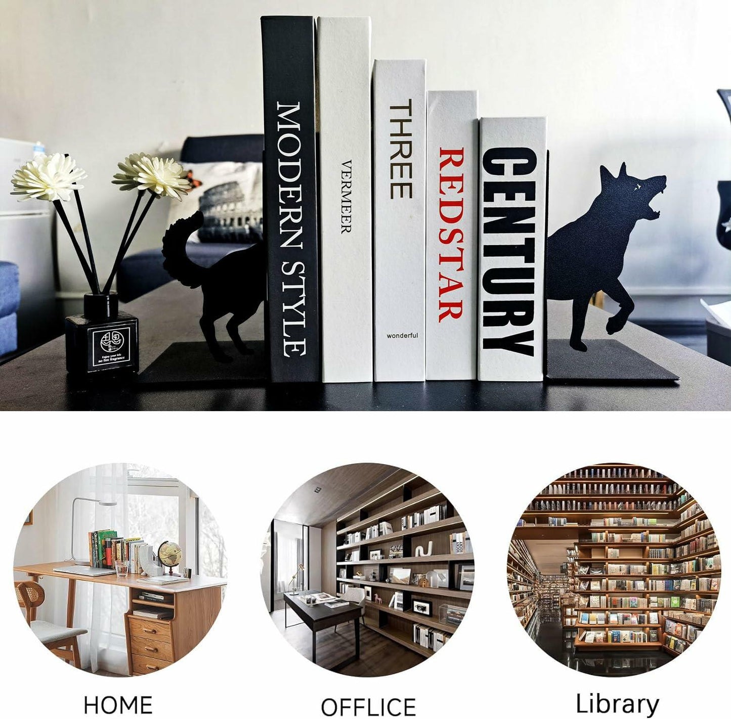 - 🐶PRACTICAL BOOKENDS - These book end surpport shelves are suitable for school, home, office, library, bookstore and more,keep all your books,CD,DVD and other items upright organized and beautifully on display, Unique set of bookends to add some charm to any room in the house. Bookends for shelves is a great way to display your books.