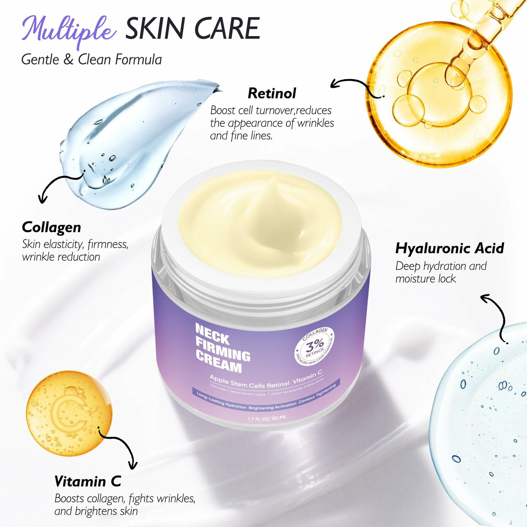 - 【neck tightening cream Deep Hydrating】: neck creams for tightening and firminghydrates deeper into the skin, going beyond the surface to reduce dryness. Firming Neck Cream also locks in moisture, minimizing water loss. The lifting, firming, and hydrating effects work together to leave skin smoother, more elastic, and revitalized.