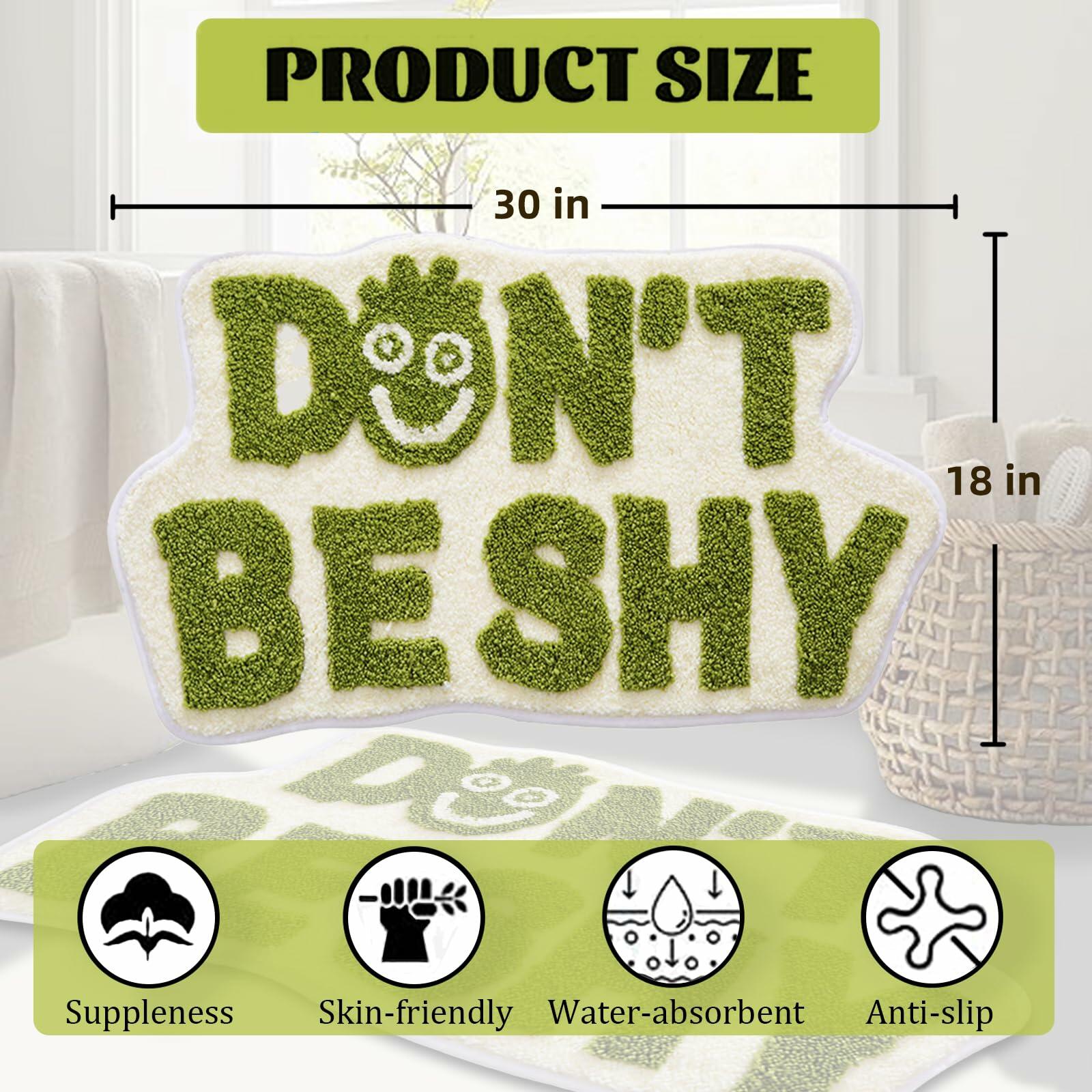 Cute Bath Mat for Bathroom, Don't Be Shy Green White Funny Bath Mat, Soft Plush Absorbent Non Slip Fun Bathroom Rugs for Sink Bedroom Kitchen Living Room Decor