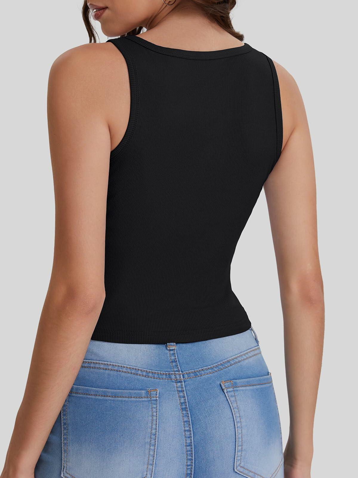 Bloggerlove Womens Summer Ribbed Knit Crop Tank Top Black XL