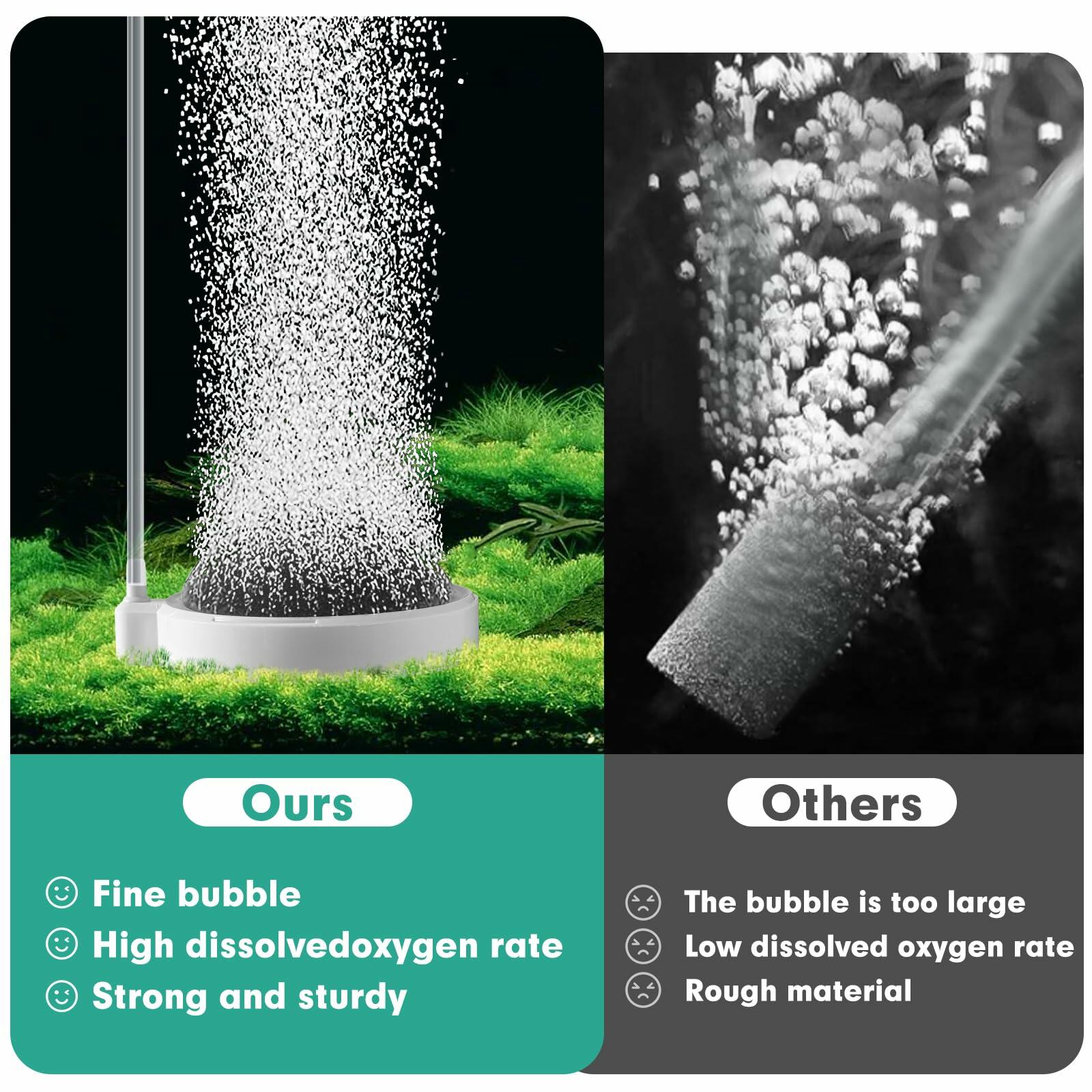 - Aerator for Fish Silent Fine Bubble: this fish tank air bubbler is engineered to produce a gentle mist of fine bubbles, ensures that the bubbles oxygenate the water efficiently without creating loud noises, produces more delicate bubbles compare to other traditional air stones