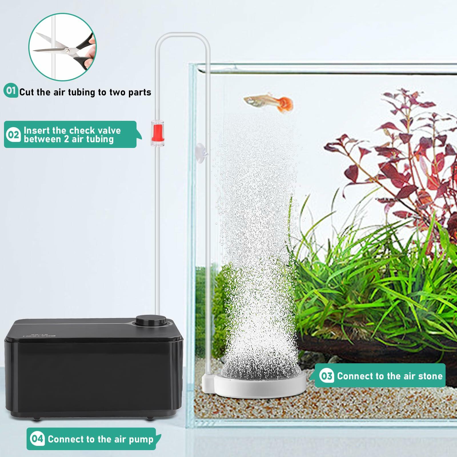 - Great Fish Tank Accessories: the package come with a 2m airline tubing, a air bubbler, suction cup x 2 and a check valve for your quick setup aquarium aeration, and for connecting your air pump(pump do not included, recommend to use a pump > 5W)