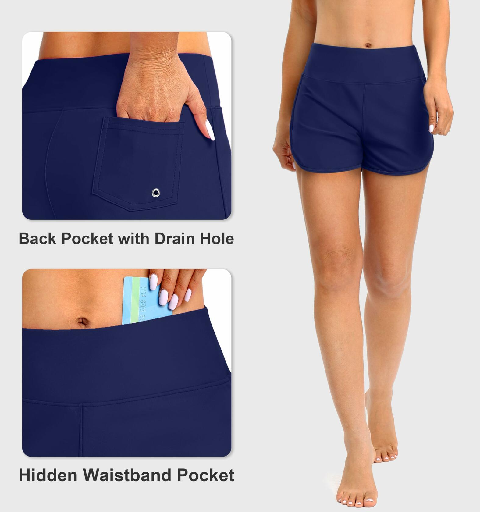 Blouty Women's Swim Board Shorts High Waisted Tummy Control Pockets Navy Size M