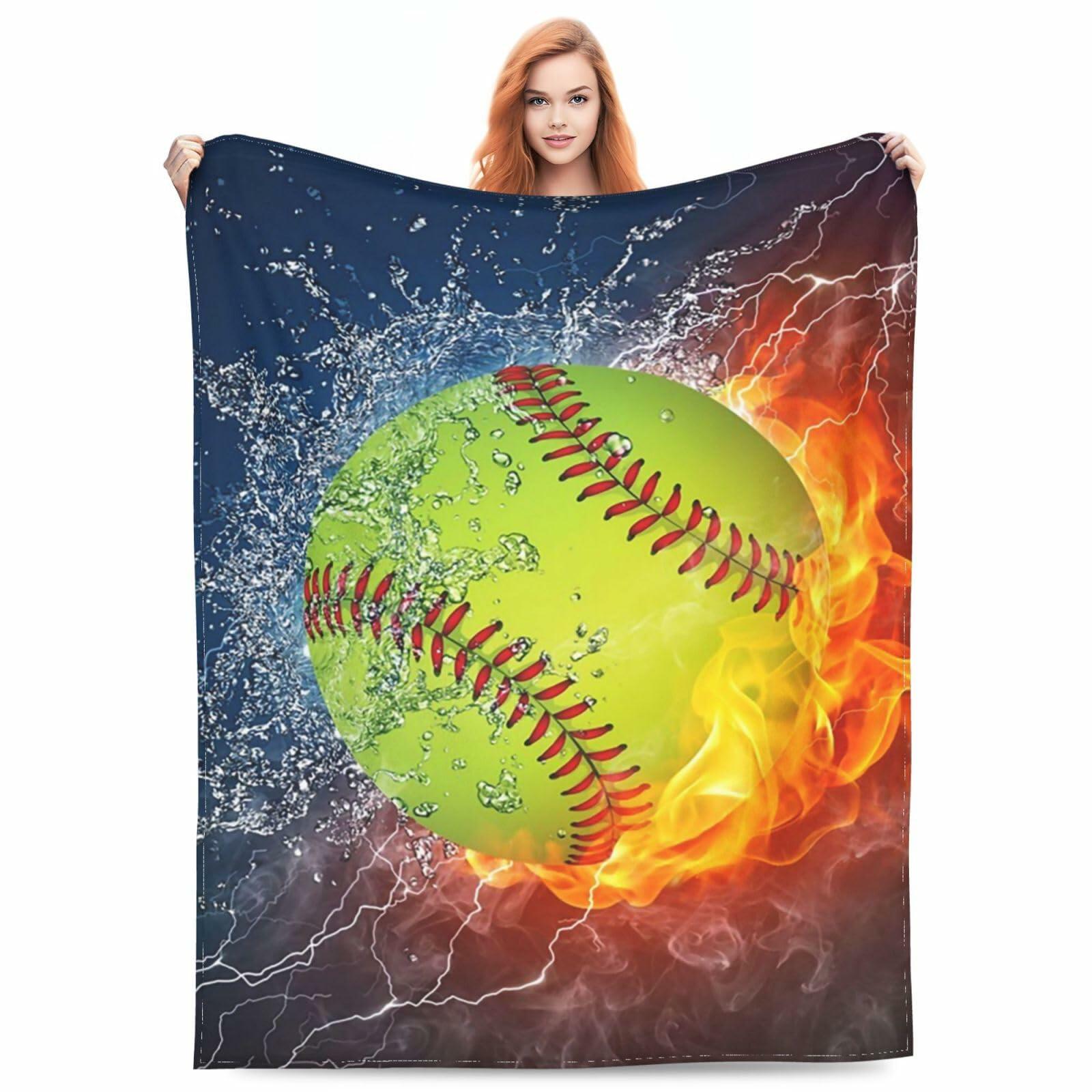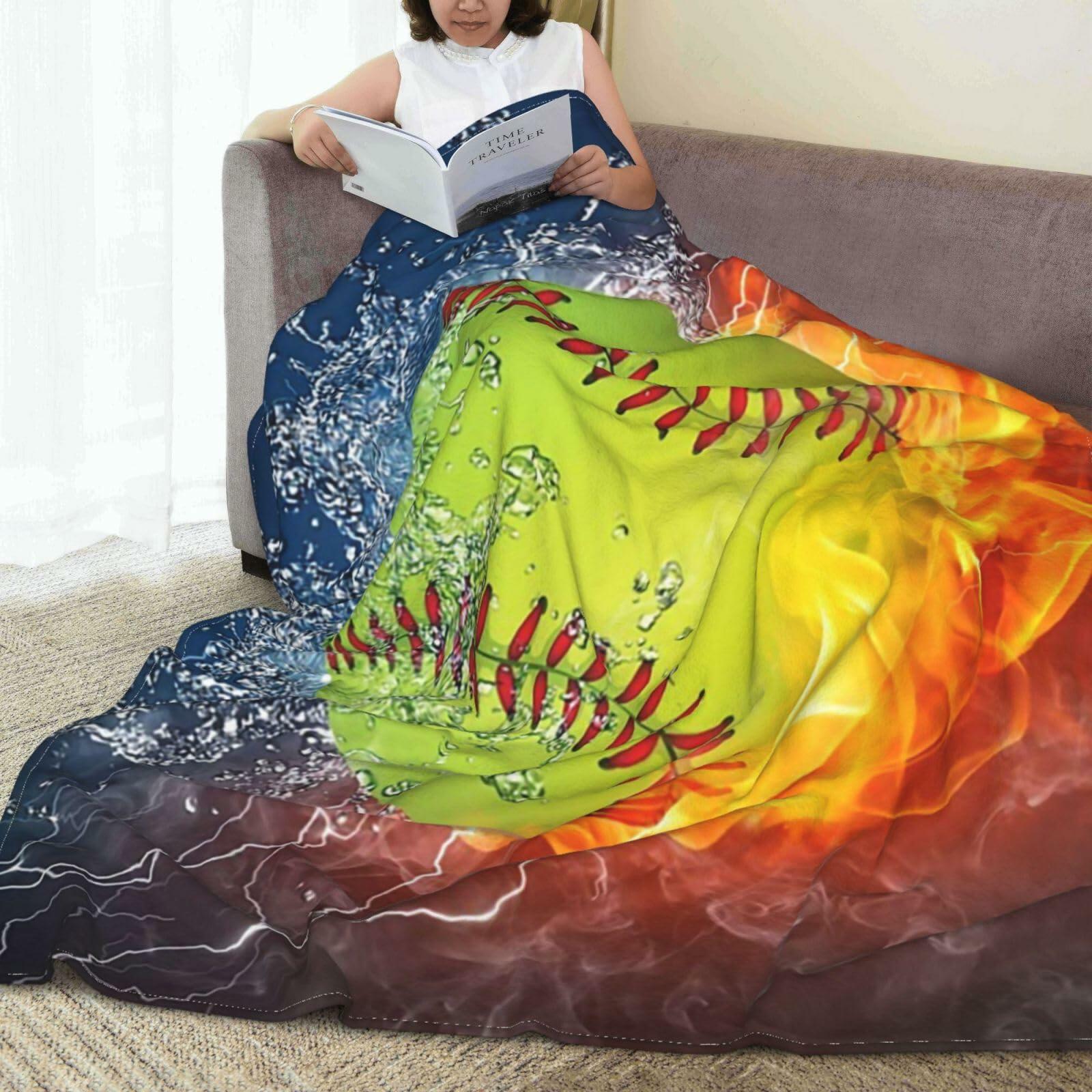BLUBLU Fire Softball Flannel Fleece Throw Blanket Lightweight Cozy Plush 60x50