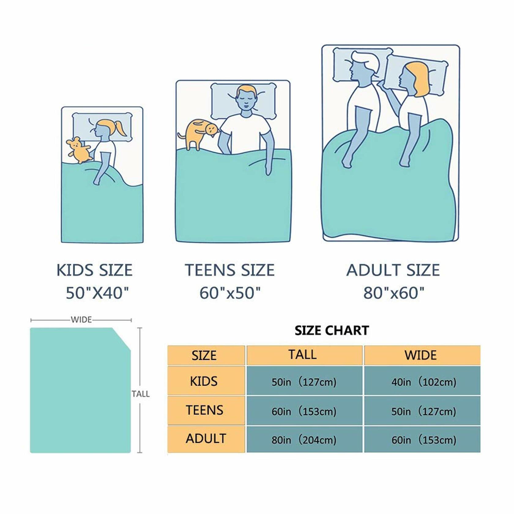 - Kid Size: 50"x40"; Teen Size: 60"x50"; Adult Size: 80"x60. Suitable for couch, sofa and toddler bed. (Notice: Please confirm the size before purchase.)