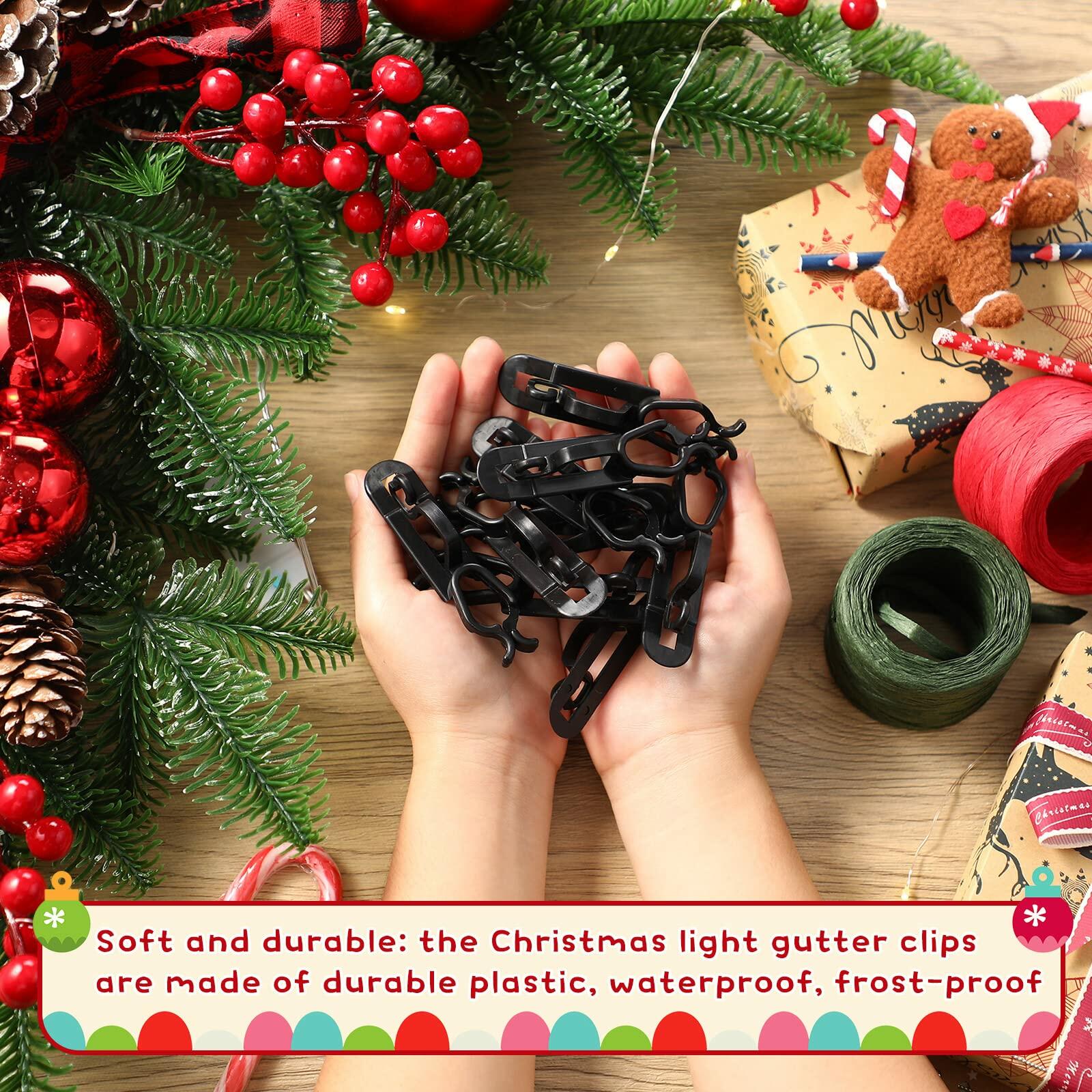- Soft material: the Christmas light gutter clips are made of plastic, waterproof, frost-proof; These outdoor Christmas light hooks are designed to be maneuvered underneath clipped into gutters; They are also flexible enough to be where they should be without being broken