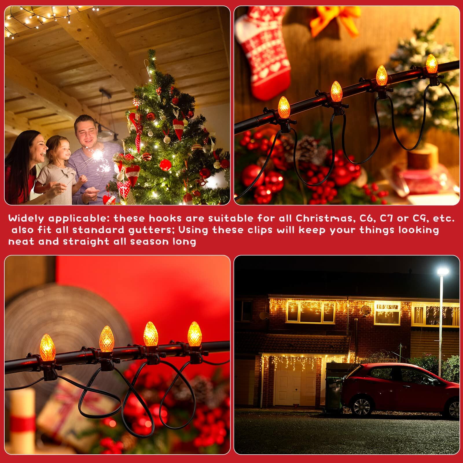 - Widely applicable: these light hooks are suitable for all Christmas lights, C6, C7 or C9, mini lights, mini icicle lights, etc., also fit all standard gutters; Using these light clips will keep your lights looking neat and straight all season long