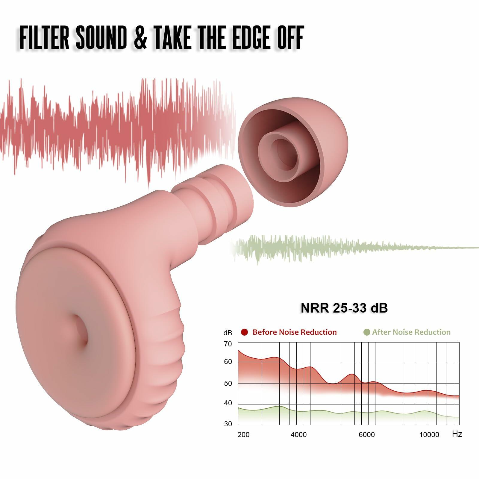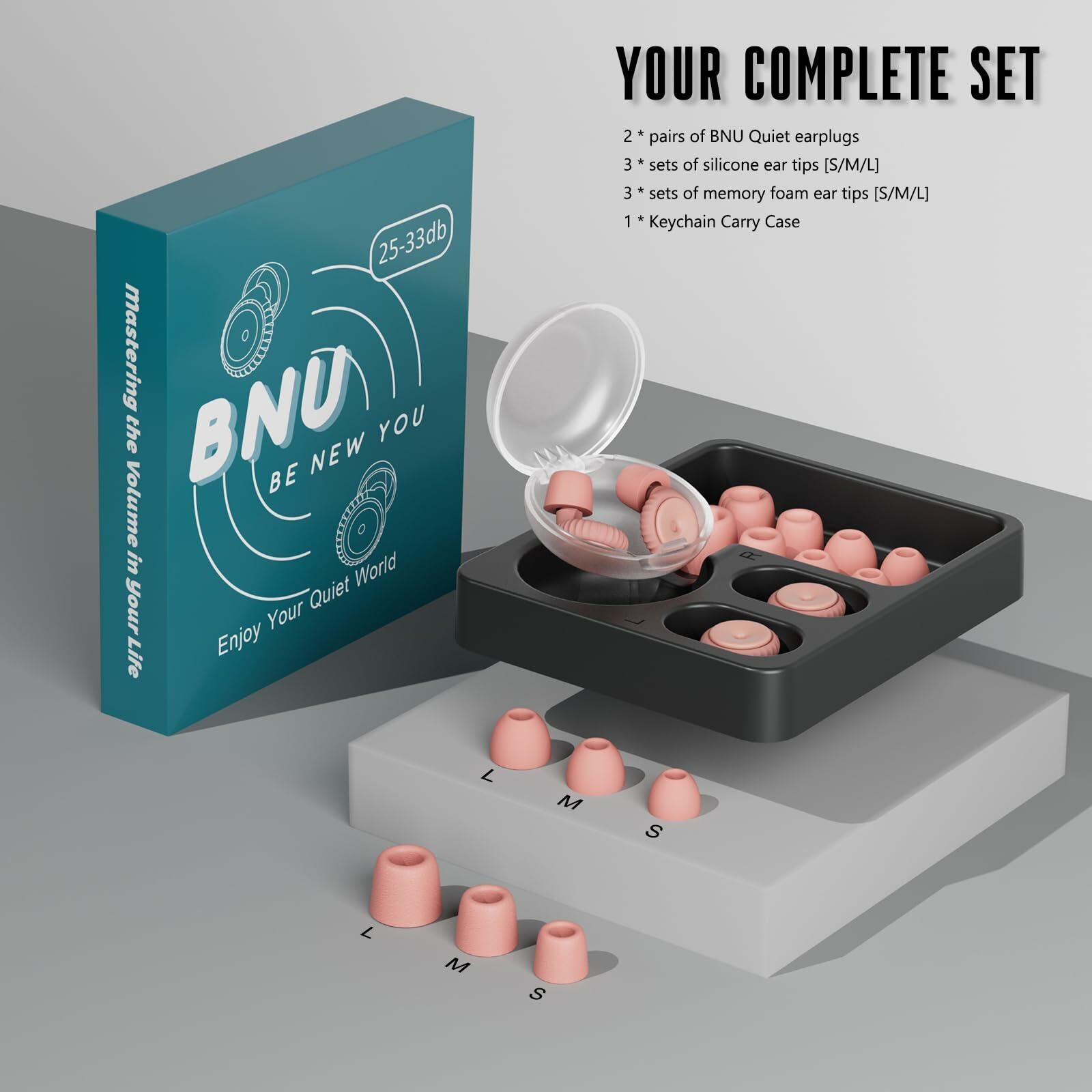 BNU Concert Ear Plugs 2 Pairs Reusable High Fidelity Noise Reduction Pink