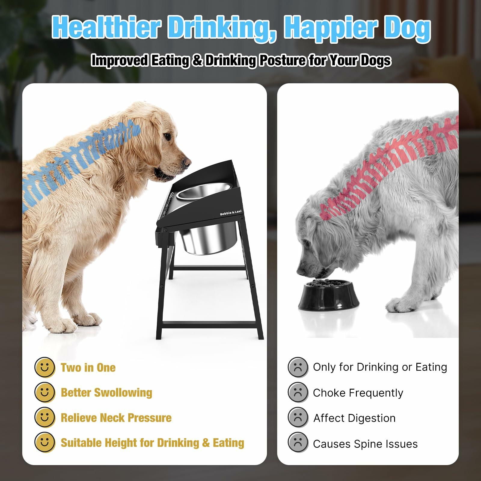 Bobbie & Laxi Elevated Dog Bowls Large Breed 15" Tall Metal Spill Proof Black