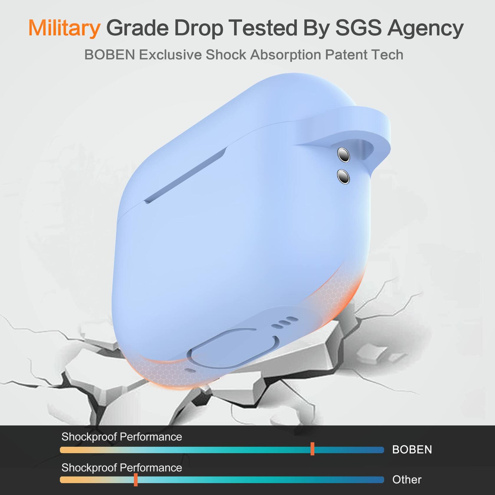 BOBEN AirPods Pro 2 Case Silicone Cover with Lanyard Keychain Blue