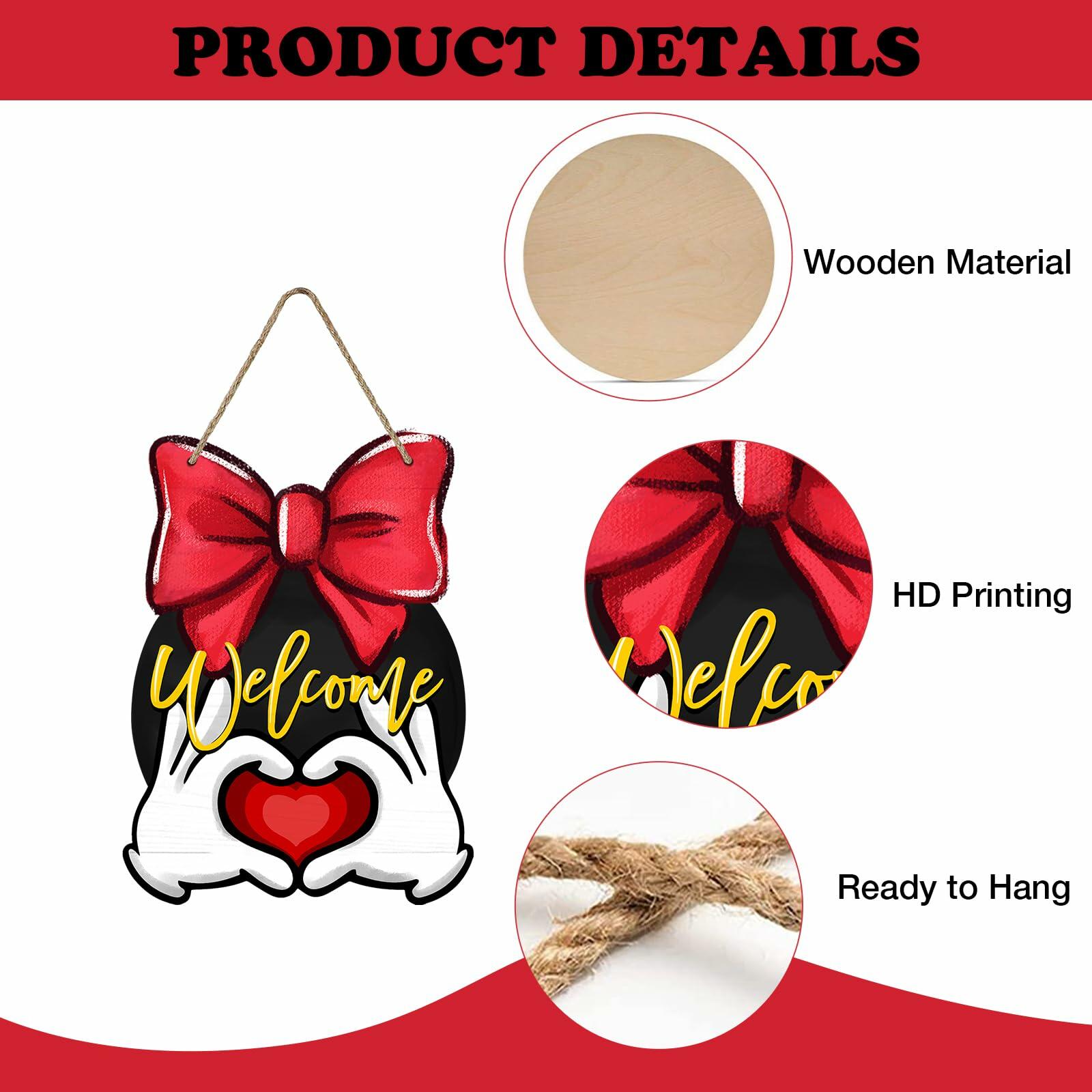 Bolisom Valentine's Day Wood Door Sign Red Love Heart Polka Dot Bow