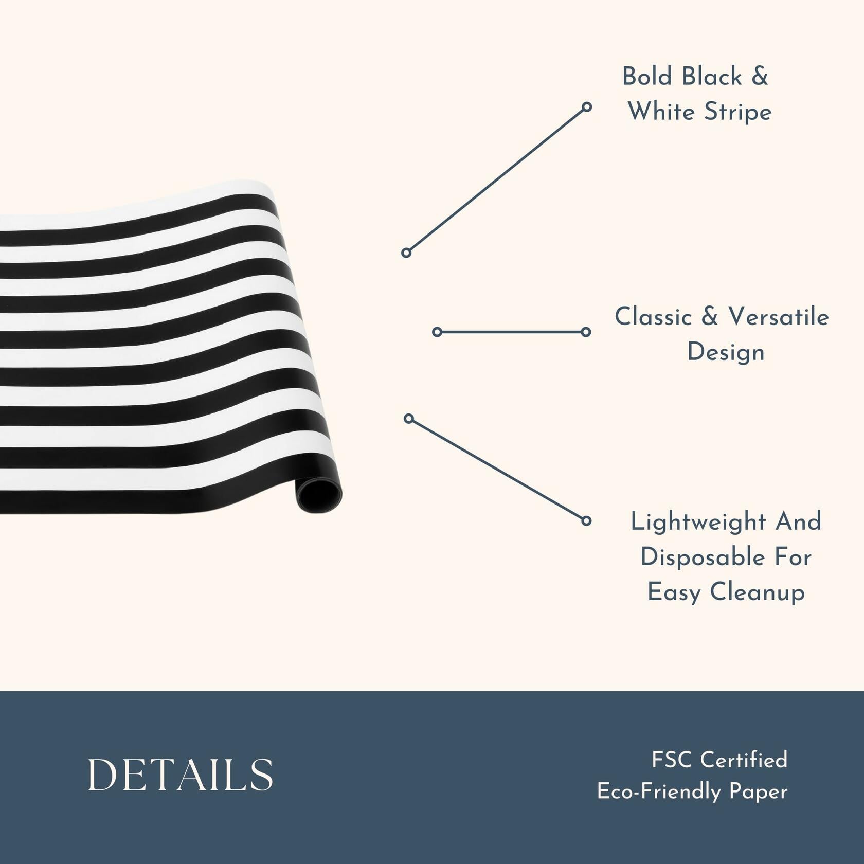 Bonjour Fête Disposable Black & White Table Runner 16x120 Pack of 1